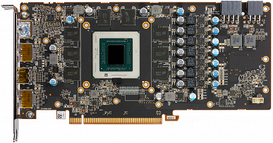 Максимальный нагрев — центральный участок PCB около GPU и силовых преобразователей.