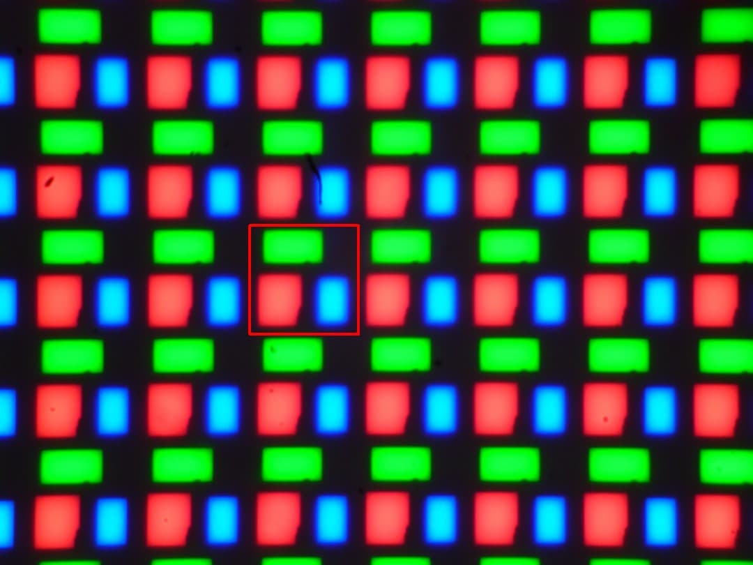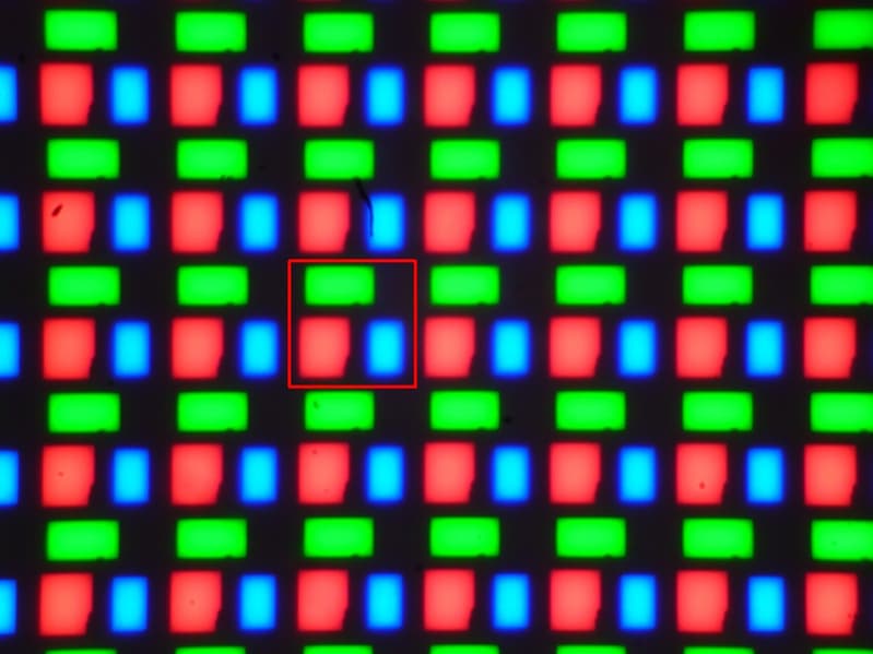 Красный квадрат очерчивает один пиксель.