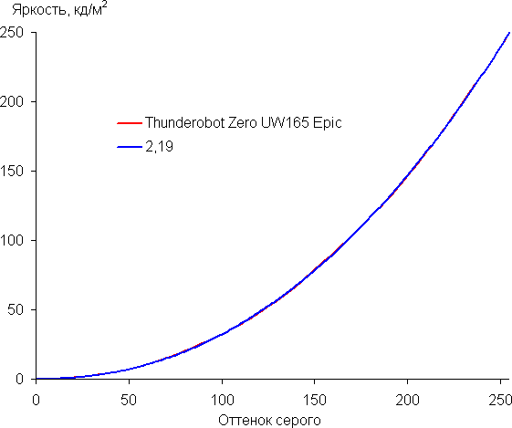 Аппроксимация полученной гамма-кривой дала показатель 2,19, что очень близко к стандартному значению 2,2. При этом аппроксимирующая степенная функция мало отклоняется от реальной гамма-кривой: