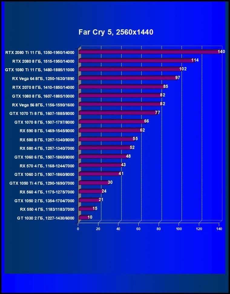 Лучший ускоритель для разрешения 4К (при максимальном качестве графики) — GeForce RTX 2080 Ti, обеспечивающий высокий уровень комфорта во всех играх. Чуть ниже — GeForce RTX 2080, также обеспечивающий хорошую играбельность в 4К. Флагман предыдущего поколения GeForce GTX 1080 Ti больше предназначен для 2560×1440, но многие игры и в 4К отлично идут на нем без снижения качества графики. Для разрешения 2.5К (при максимальном качестве) подойдут GeForce RTX 2070, Radeon RX Vega 64, а также GeForce GTX 1080. А если пользователь согласен понизить уровень качества, то для такого разрешения годятся и Radeon RX 580 8 ГБ, GeForce GTX 1070 Ti, GeForce GTX 1070, которые к тому же отлично справятся с Full HD (или 1920×1200) на максимальных настройках. Менее производительные карты уже не тянут разрешение Full HD при максимальном качестве, а значит, придется понижать качество картинки.
