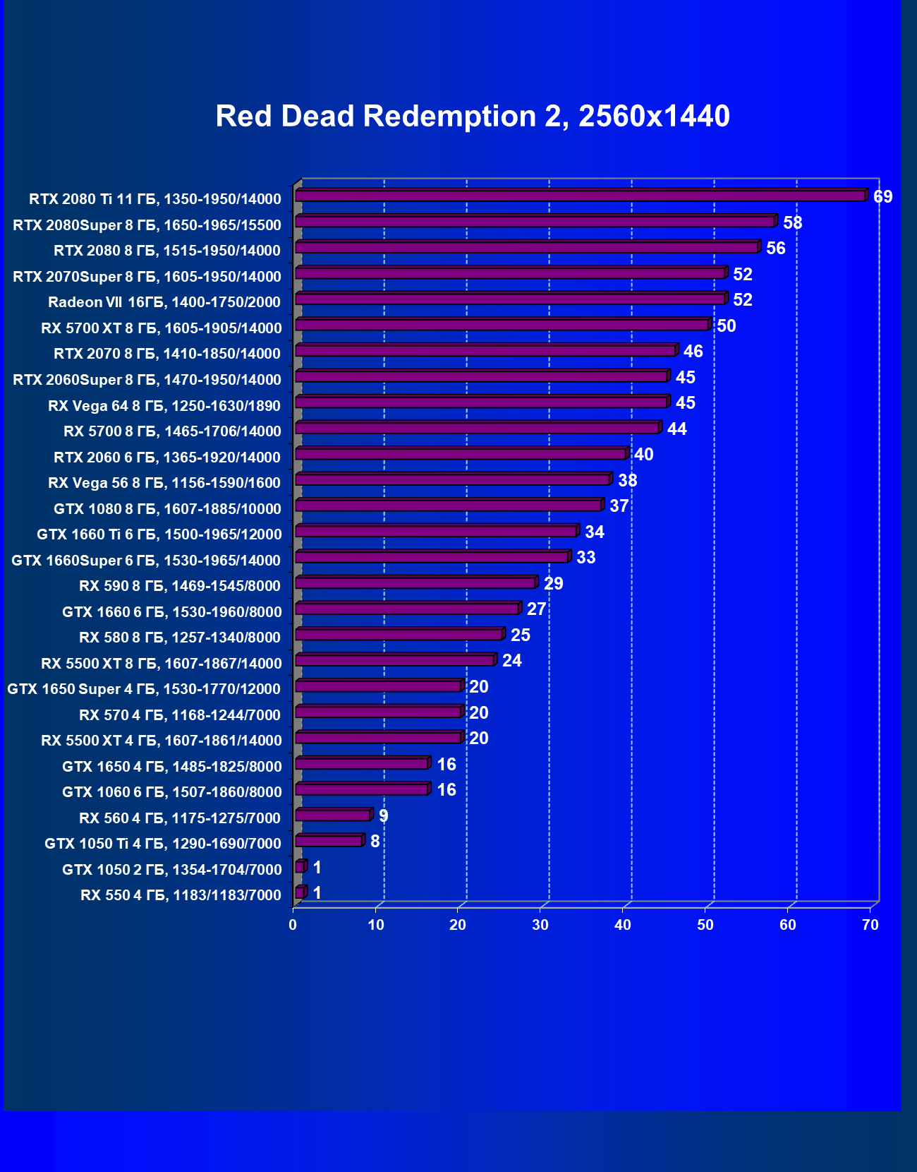 | 14 | RX 5500 XT 8 ГБ, 1607—1867/14000 | 393 | 570 | 14 500 |