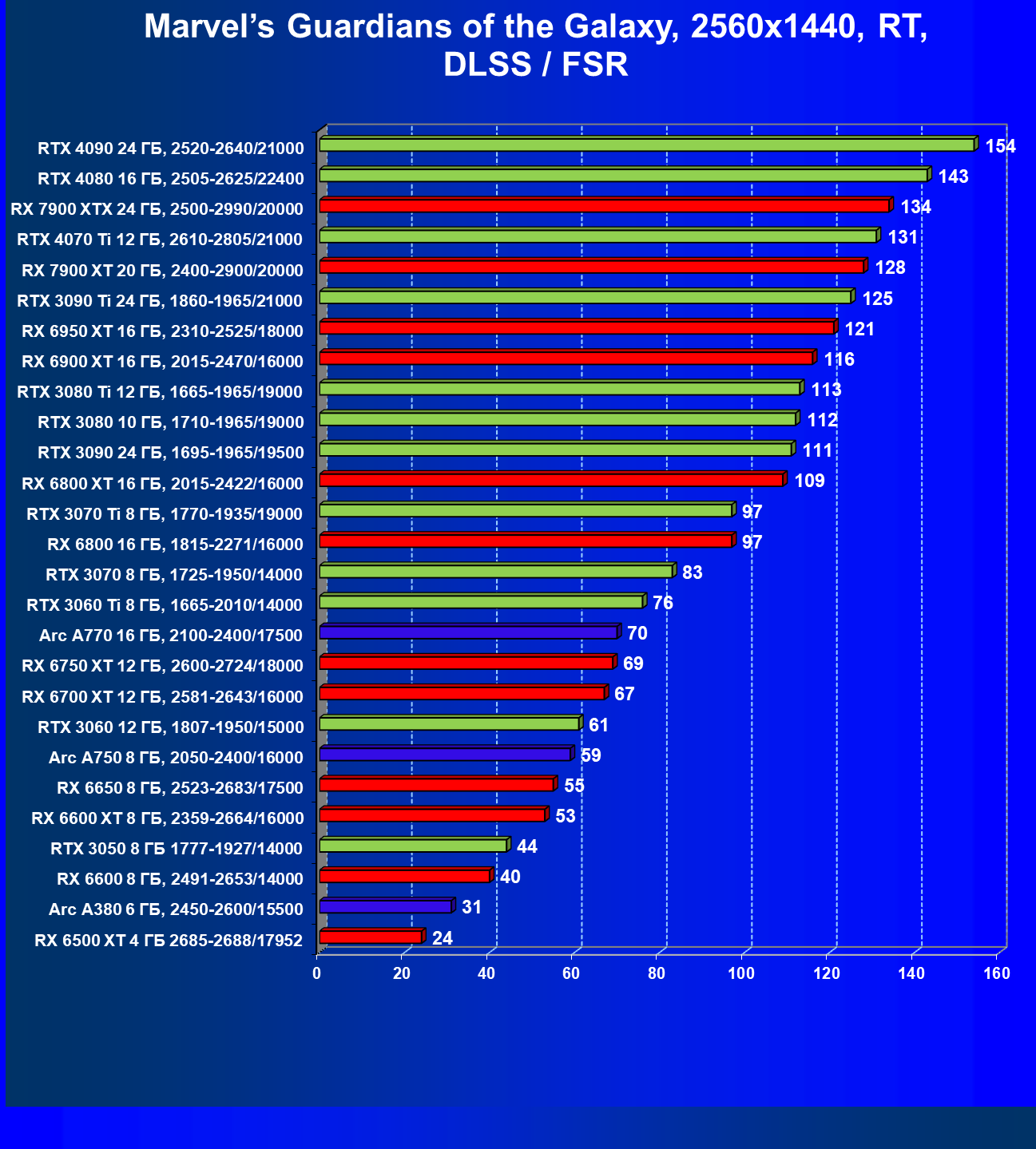 Сравнение лидера Arc A750 с другими картами Intel