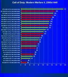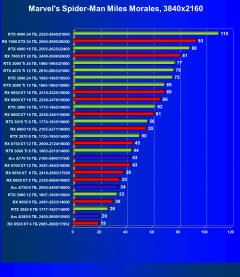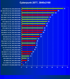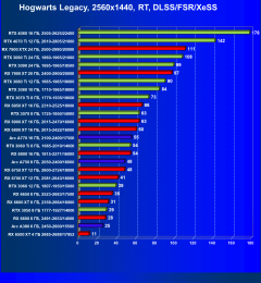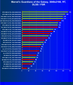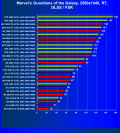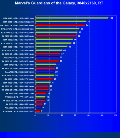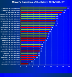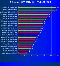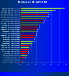 Рейтинг составлен по 9 тестам с применением технологии трассировки лучей (без Nvidia DLSS, AMD FSR и Intel XeSS). Этот рейтинг нормирован по самому слабому ускорителю в данной группе — Radeon RX 6500 XT (то есть сочетание скорости и функций Radeon RX 6500 XT приняты за 100%).