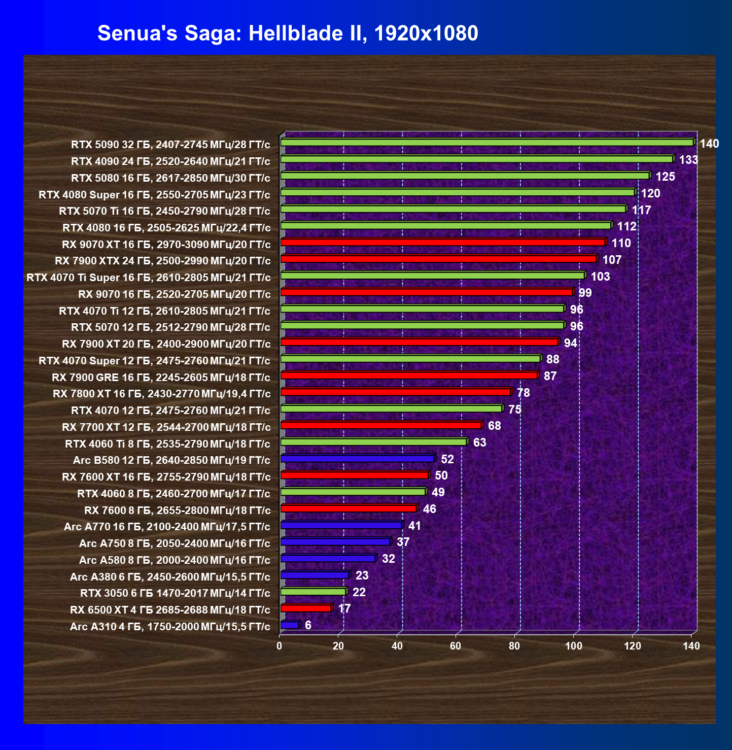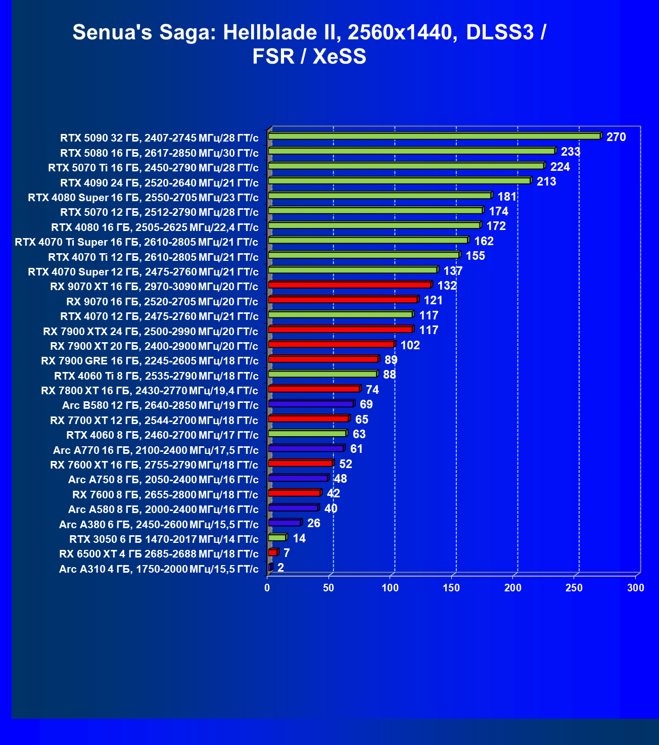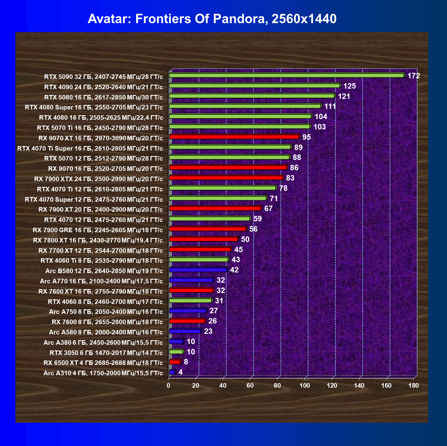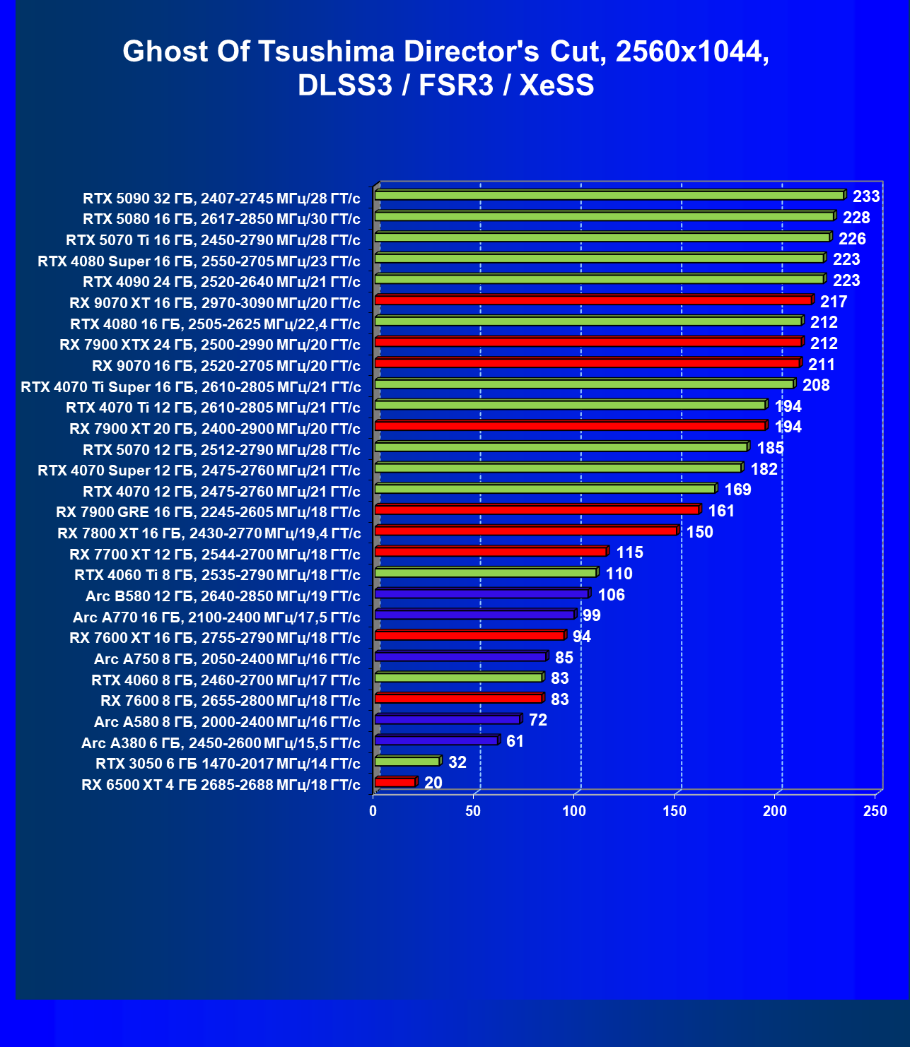 Все упомянутые видеокарты подойдут и для игр на мониторах с более массовым разрешением Full HD. При включении трассировки лучей совместно с DLSS, FSR или XeSS полный комфорт обеспечивают карты уровня Radeon RX 7700 XT, GeForce RTX 4060, Arc B580, а также Arc A770.