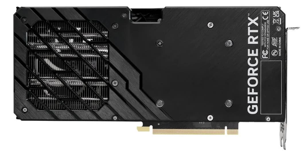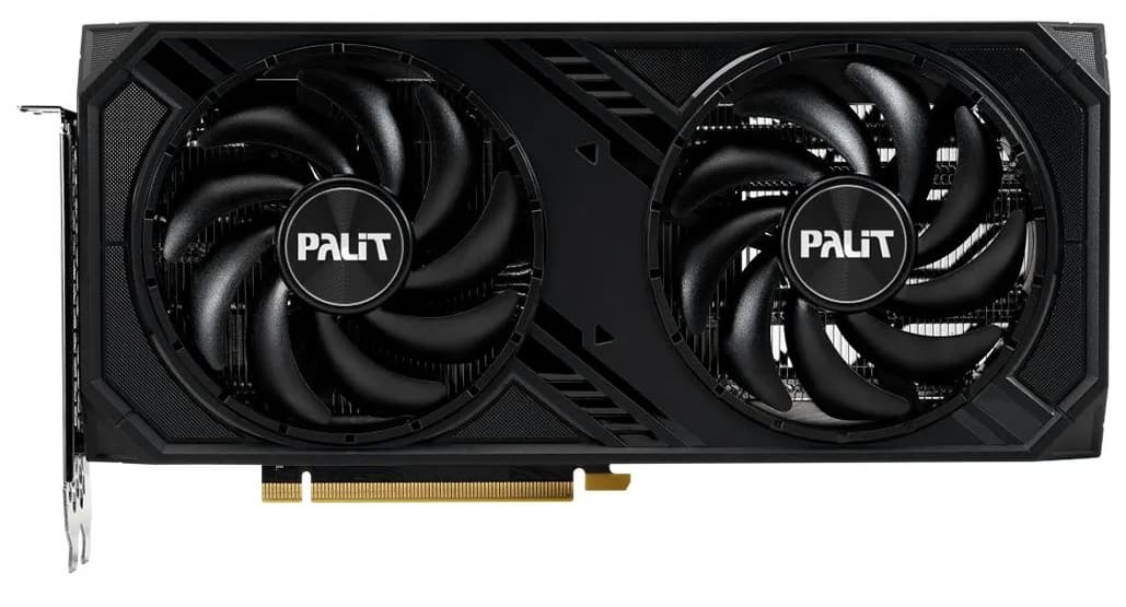 Выбранная карта Palit GeForce RTX 4070 Dual (12 ГБ) имеет стандартные, даже компактные габариты (270×127×40 мм), занимает 2 слота в системном блоке. Карта имеет обычный набор видеовыходов (три DP 1.4a, один HDMI 2.1), требует использовать один стандартный 8-контактный разъем питания.