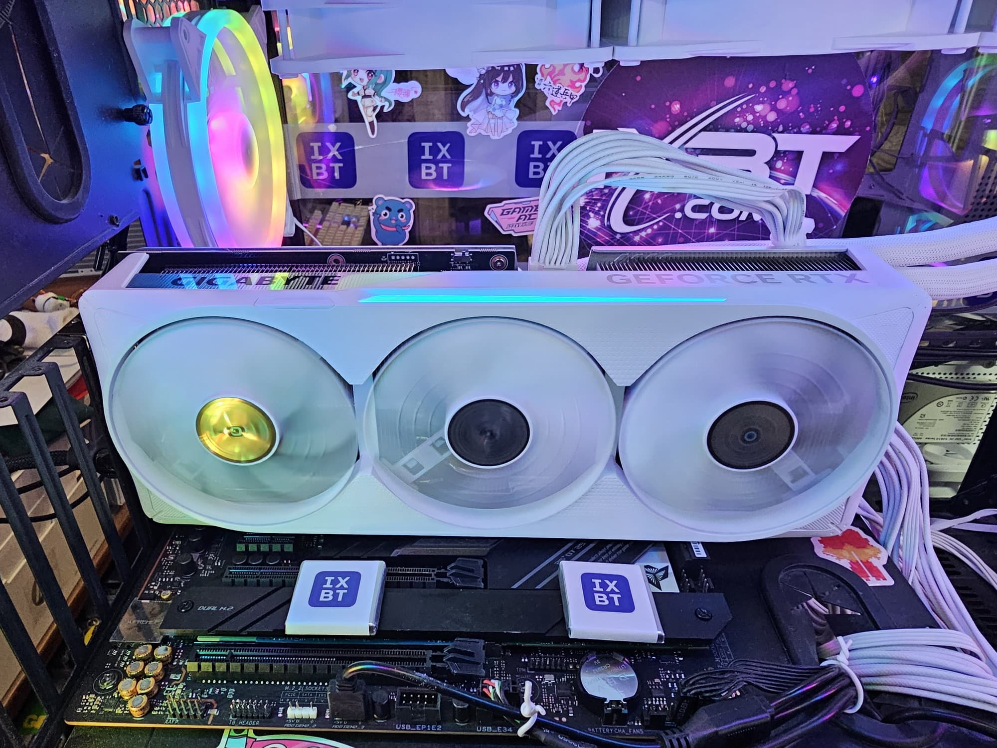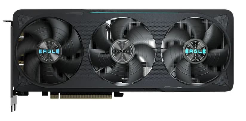 Выбранная нами карта Gigabyte имеет относительно небольшие размеры 290×120×50 мм, требует 3 слота для размещения. Карта имеет стандартный набор видеовыходов (3 DP 2.1a и 1 HDMI 2.1b) и один 16-контактный разъем питания 12VHPWR типа PCIe 5.0.
