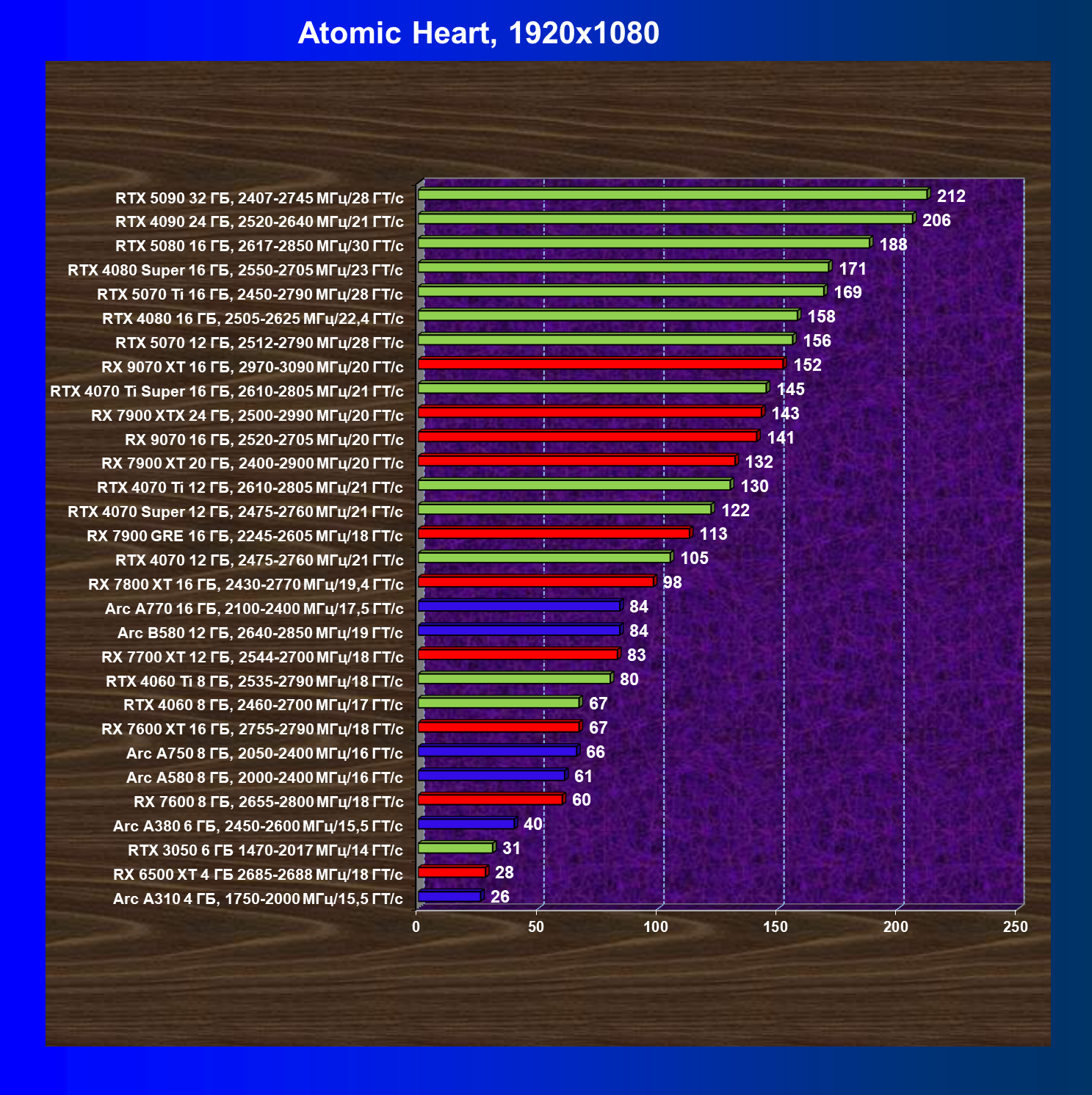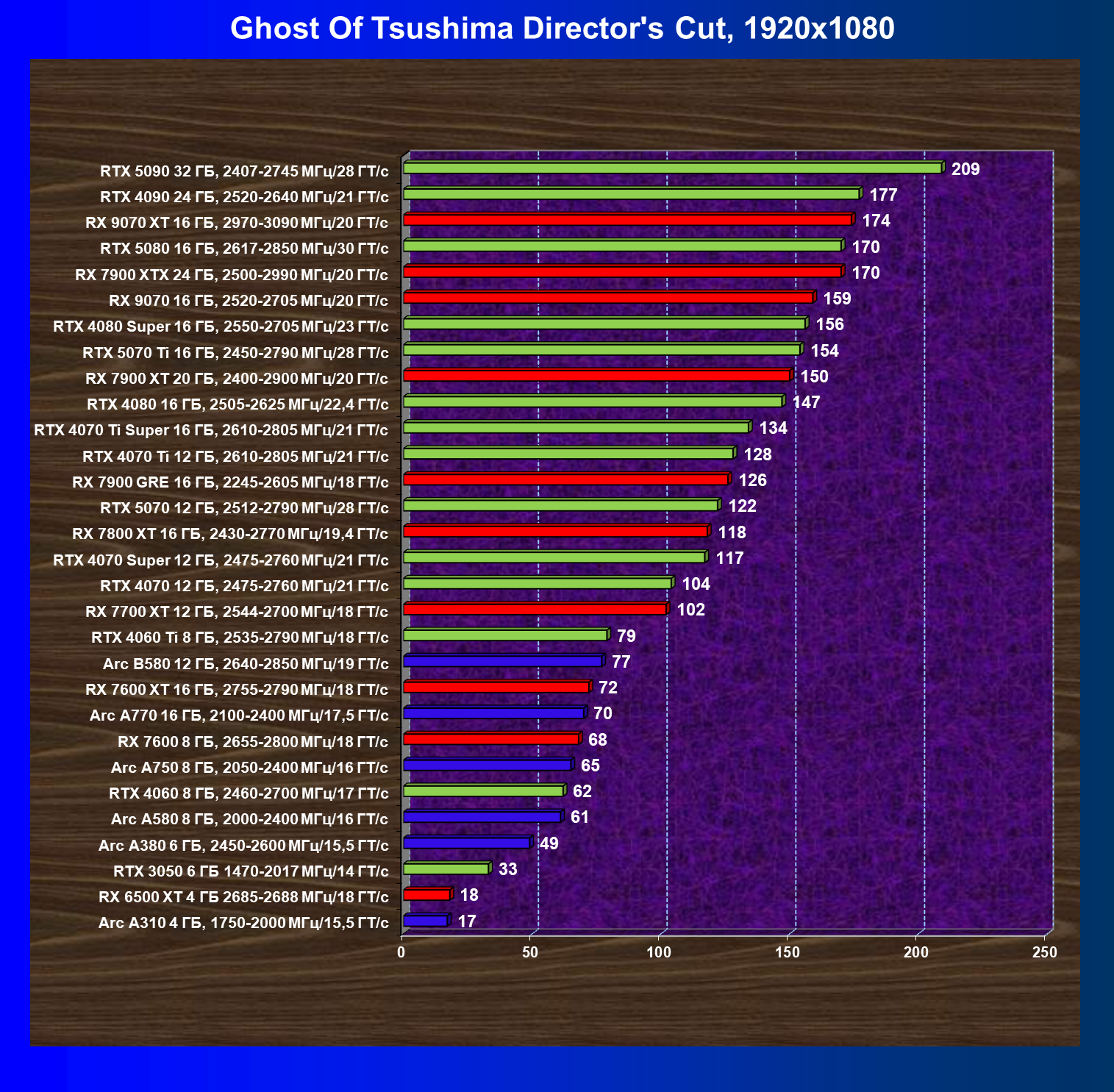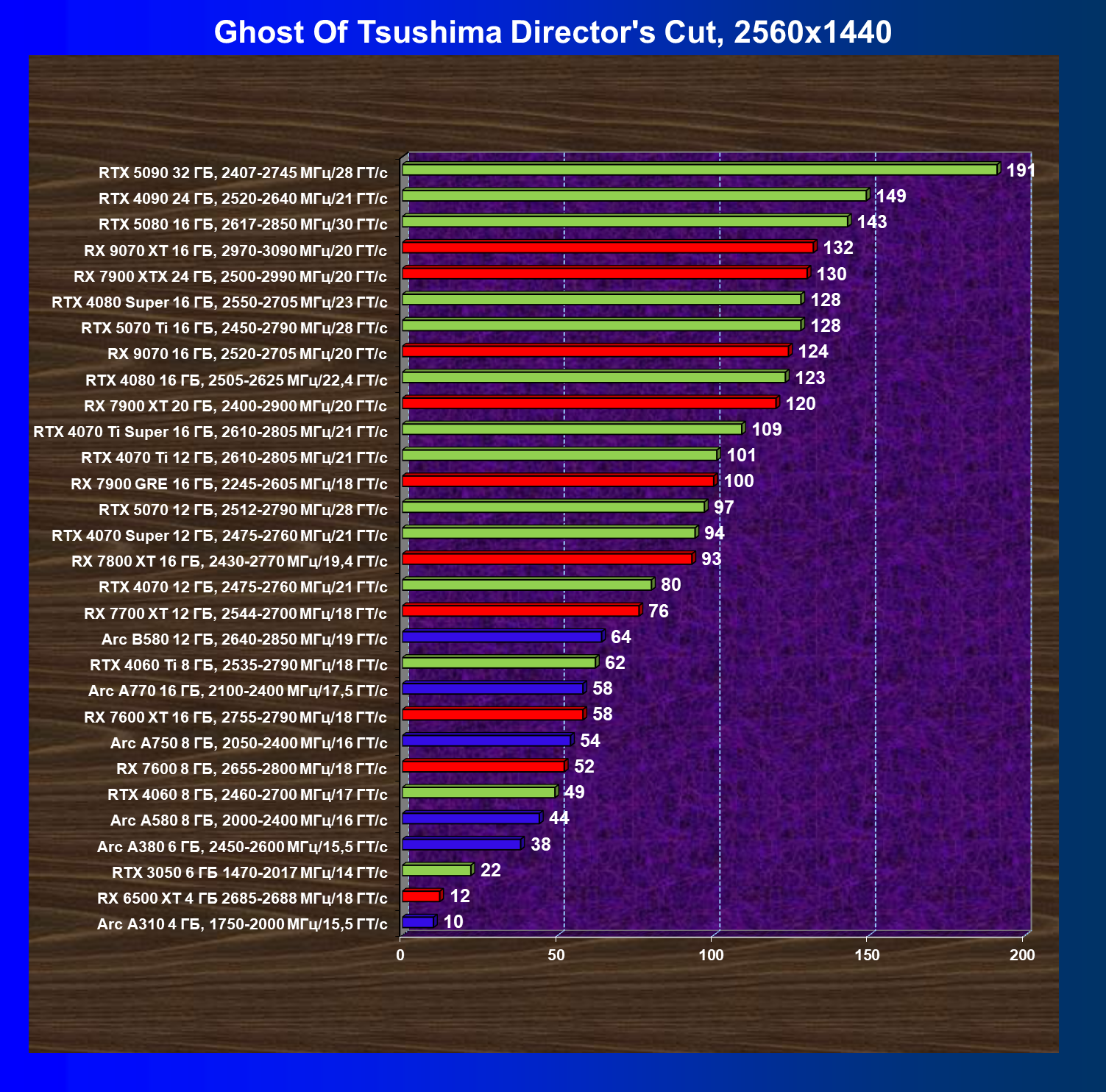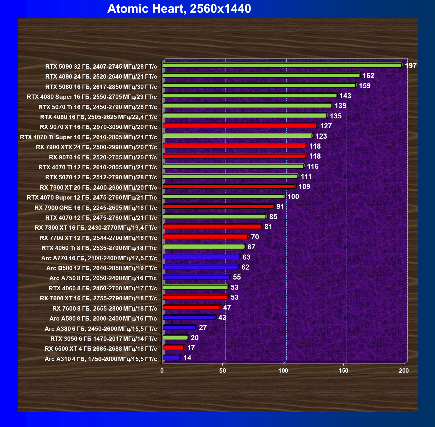 GeForce RTX 5090, GeForce RTX 5080, GeForce RTX 4090, GeForce RTX 4080 Super, GeForce RTX 4080, GeForce RTX 4070 Ti Super и Radeon RX 7900 XTX, в принципе, в каких-то играх осиливают даже разрешение 8K, но без оговорок — только GeForce RTX 5090, GeForce RTX 5080 и GeForce RTX 4090.