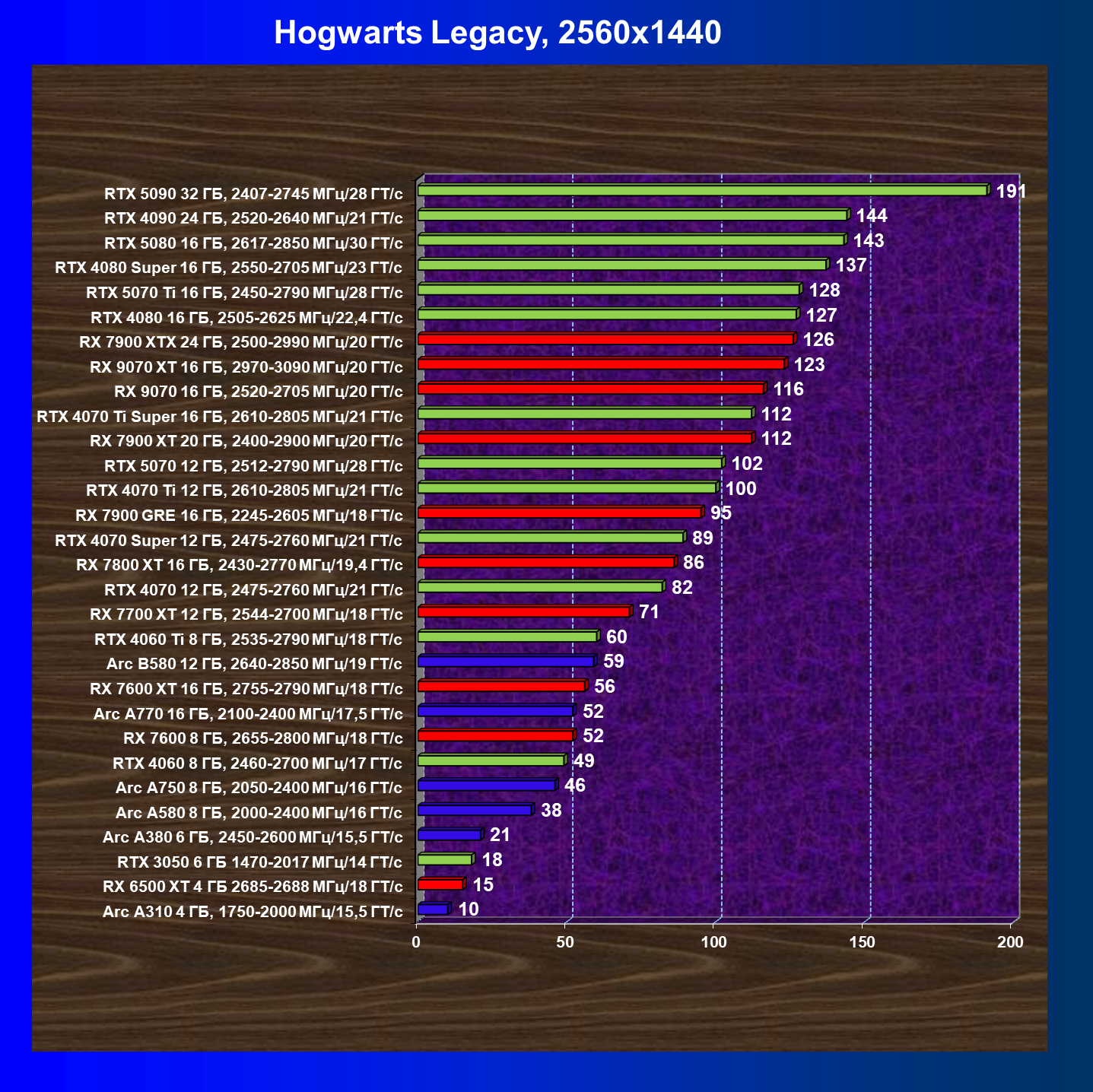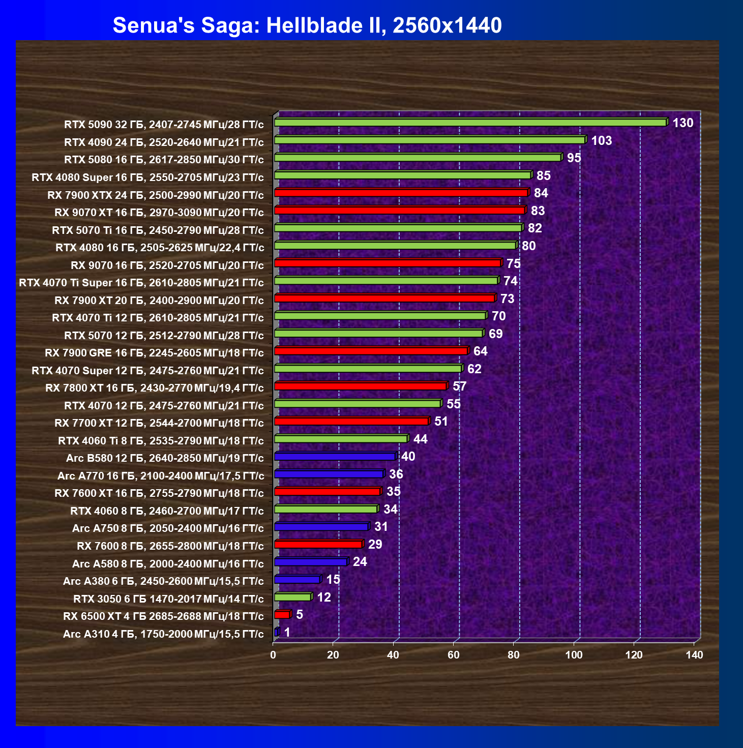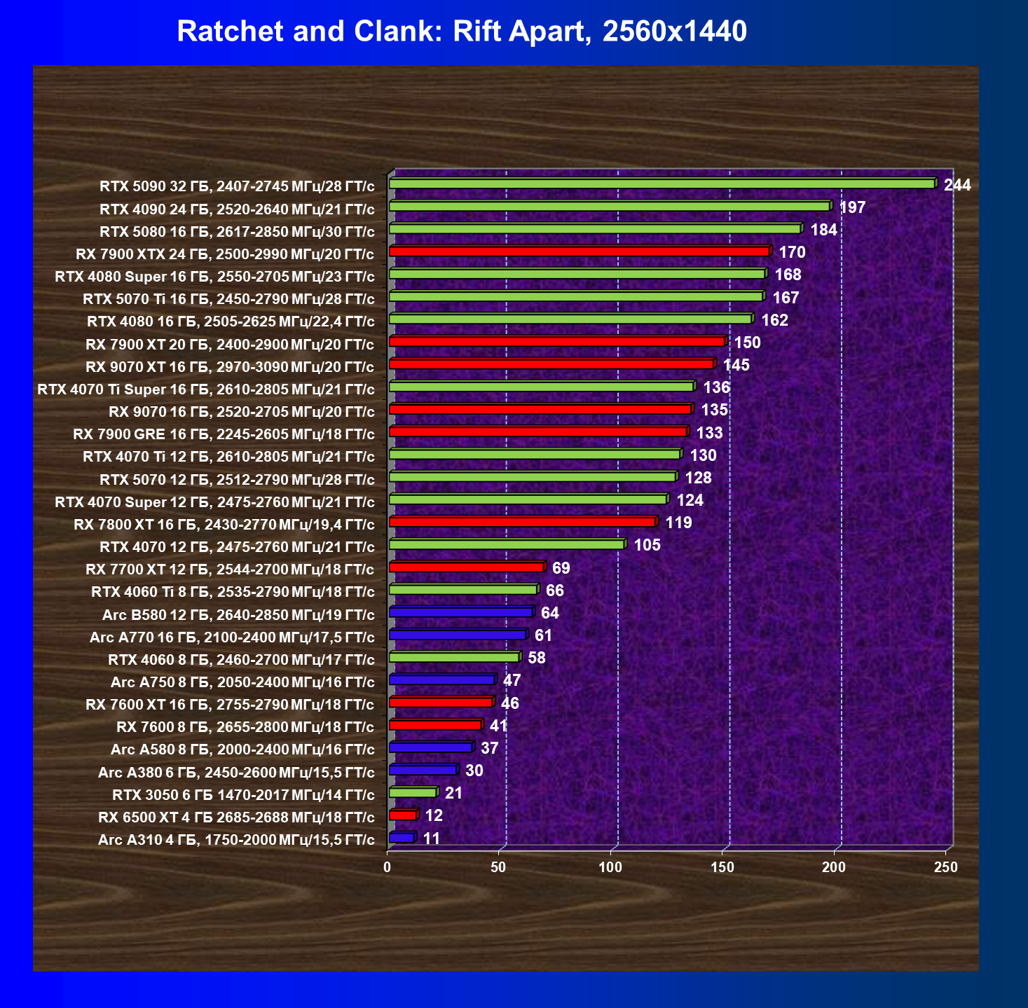 В рейтинге полезности для разрешения 2560×1440 в классических играх без RT лидером является ускоритель Arc A750 8 ГБ из-за достаточного объема памяти для такого разрешения и оптимальной цены. А вот в играх с RT и технологиями масштабирования самым выгодным является GeForce RTX 5070.