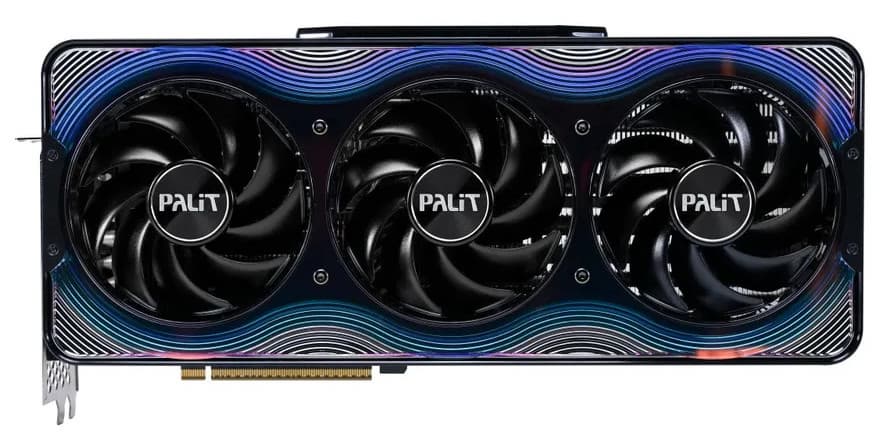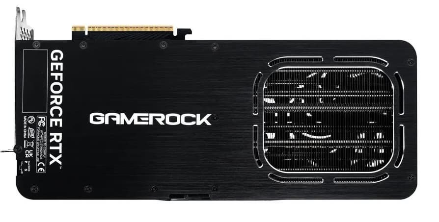 Габариты модели Palit GeForce RTX 5070 Ti GameRock (16 ГБ) составляют 330×150×70 мм, а по толщине эта видеокарта занимает 4 слота в корпусе. Набор видеовыходов стандартный: 3 DP 2.1a и 1 HDMI 2.1b. Карта Palit имеет 16-контактный разъем питания версии PCIe 5.0 (в комплекте поставки имеется адаптер-переходник для подключения разъемов питания типа PCIe 2.0 с 2 таких разъемов).