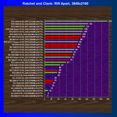 Ускорители уровня Radeon RX 7900 XT, Radeon RX 7900 GRE, GeForce RTX 4070 Super и GeForce RTX 4070 при включении RT в разрешении 4K смотрятся бледнее, однако всё еще способны обеспечить приличный комфорт в играх.