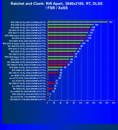 Менее производительные карты уровня GeForce RTX 4060 Ti, Arc B580 и Radeon RX 7700 XT демонстрируют в разрешении 4K приемлемый FPS не во всех играх даже без включения RT (но при максимальных настройках графики), и желательно будет включить DLSS/FSR/XeSS или снизить качество.