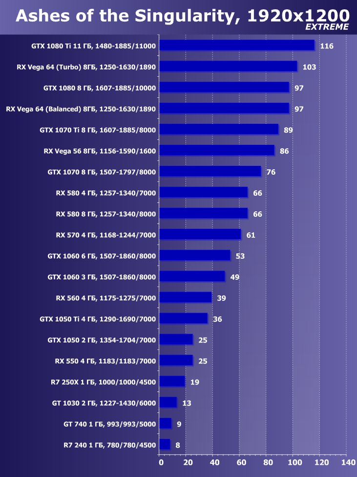 Продукты топового класса, вроде Radeon RX Vega 64/56, GeForce GTX 1080, GTX 1080 Ti, GTX 1070, GTX 1070 Ti, следует рассматривать исключительно с точки зрения Рейтинга iXBT.com, потому что они предназначены для энтузиастов, выпускаются относительно малыми партиями и имеют завышенные цены, так что в общем рейтинге полезности обычно занимают последние позиции. Рыночная судьба таких ускорителей будет определяться желанием геймера получить самое мощное решение.