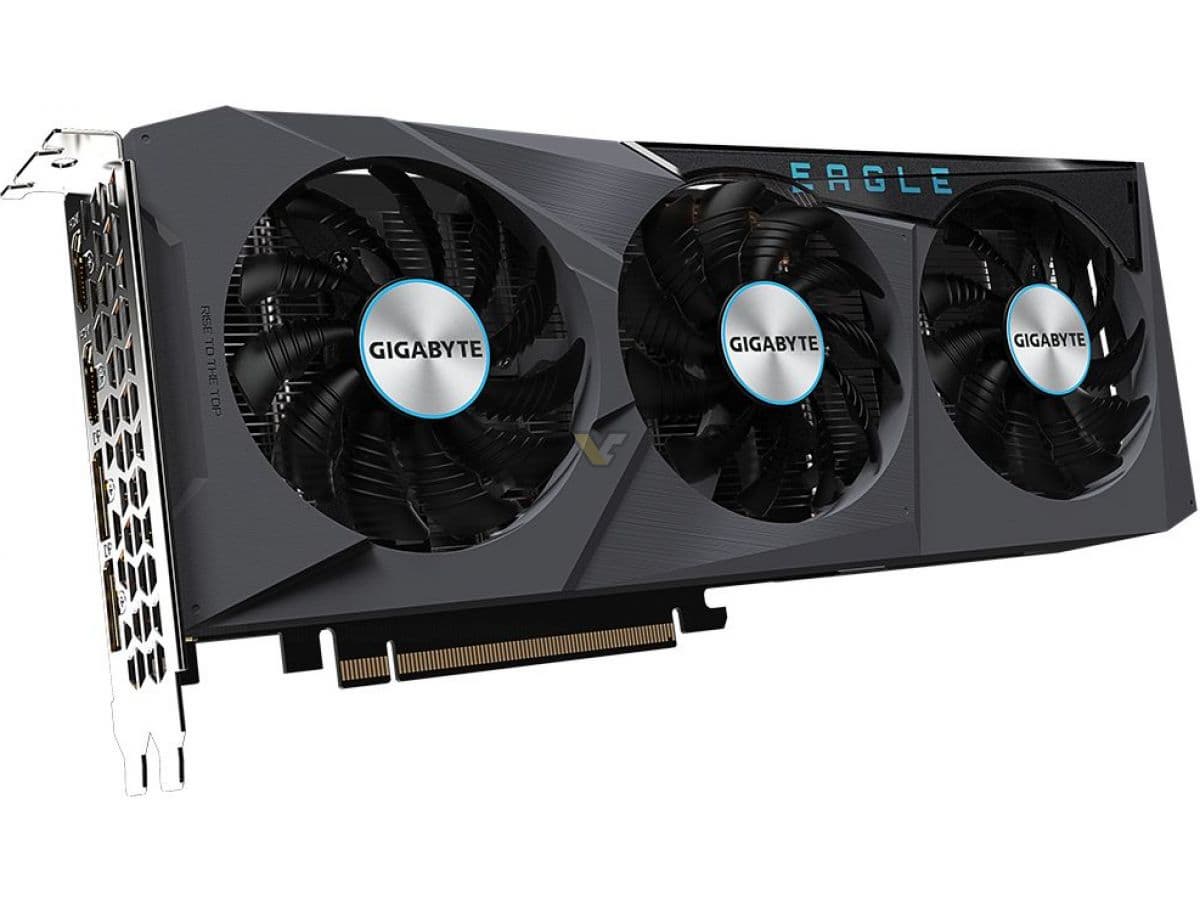 Карта без подсветки выглядит скромно, но это добротная «рабочая лошадка». Она прекрасно показывает себя в разрешении Full HD, а в ряде игр способна обеспечить хорошую производительность и в разрешении 2.5К без снижения настроек графики. Модель оснащена тремя вентиляторами, то есть и в данном случае охлаждение даже избыточное. У карты 4 видеовыхода: 2 HDMI 2.1 и 2 DisplayPort 1.4a. Объем видеопамяти — 8 ГБ, для ускорителя такого уровня этого хватает с запасом. В принципе, карта интересна даже для майнинга криптовалют, поскольку используется память GDDR6, достаточно быстрая, но не такой кипятильник, как GDDR6Х. Интерфейс PCIe 4.0, но урезан до х8.