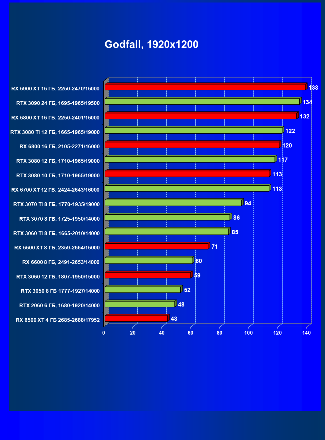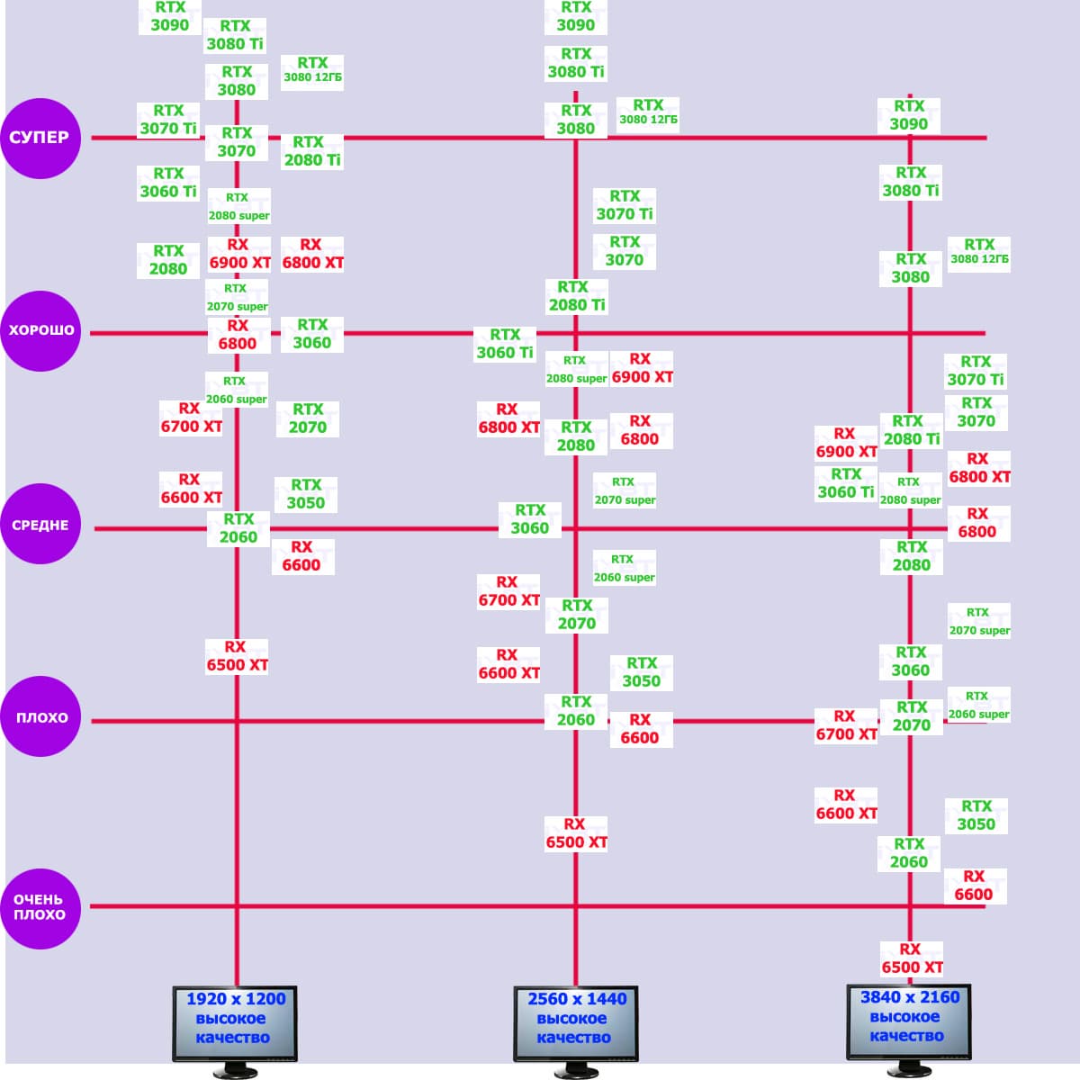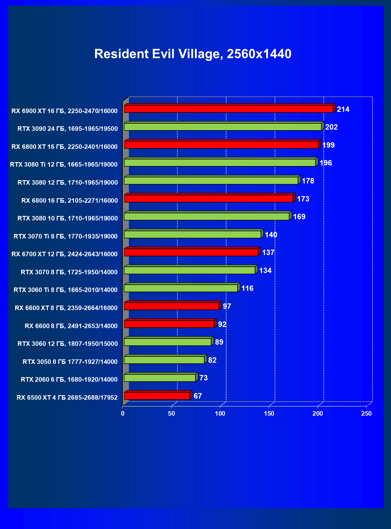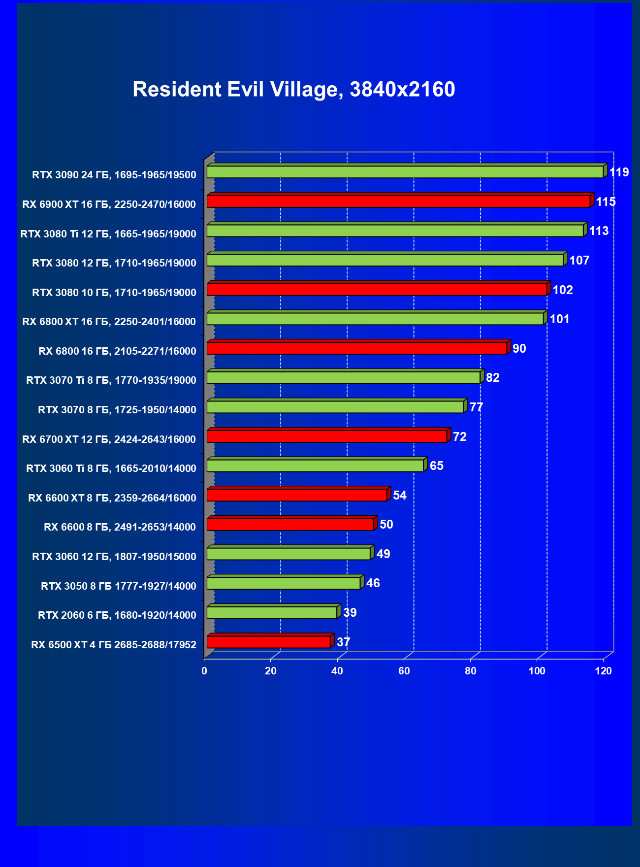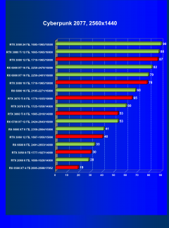 Теперь пройдемся по разрешениям без учета ценового фактора — только чистая производительность. На картинке ниже приведена производительность без RT.