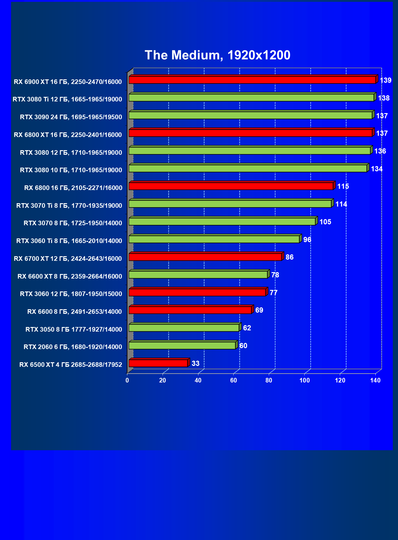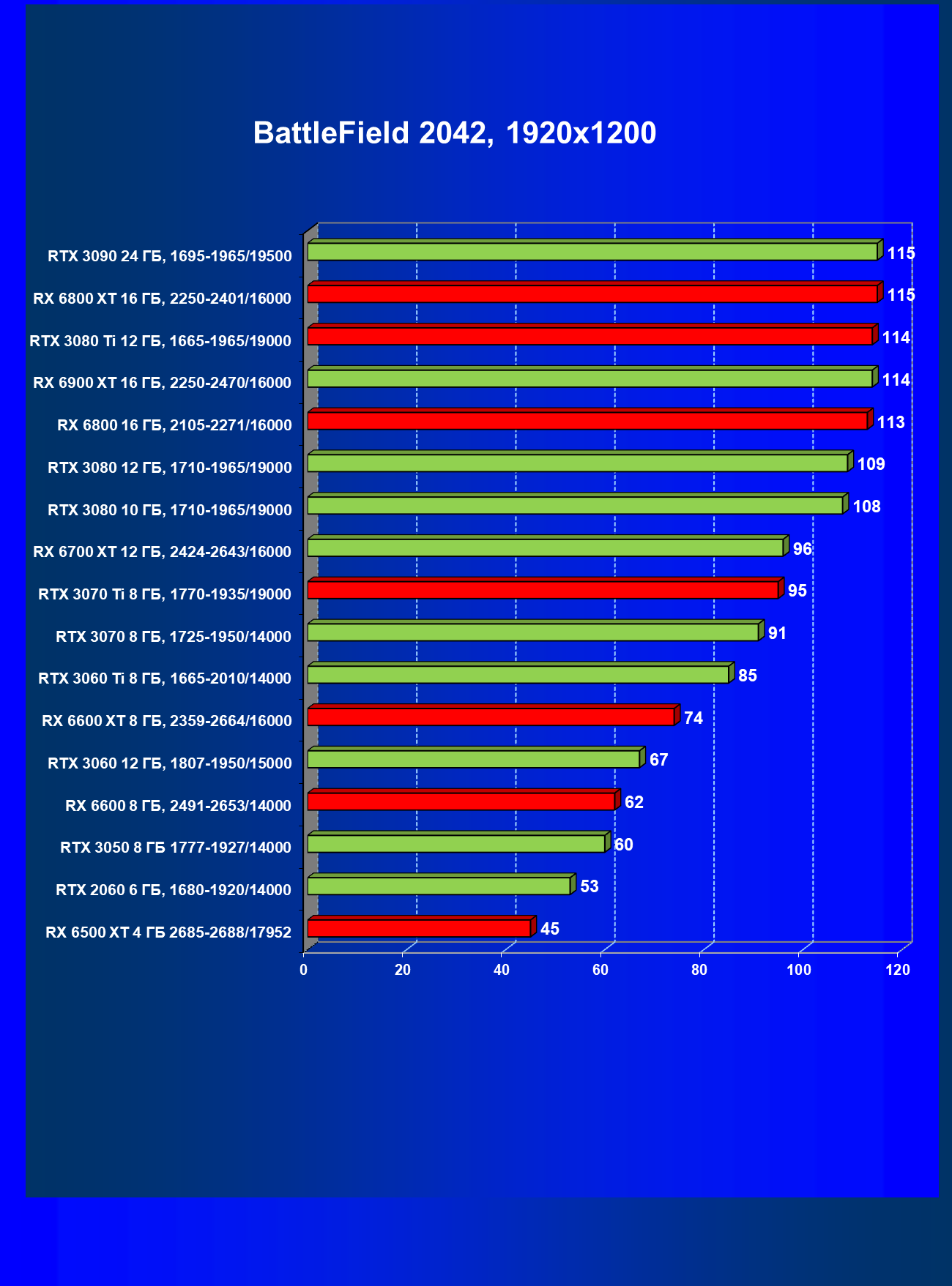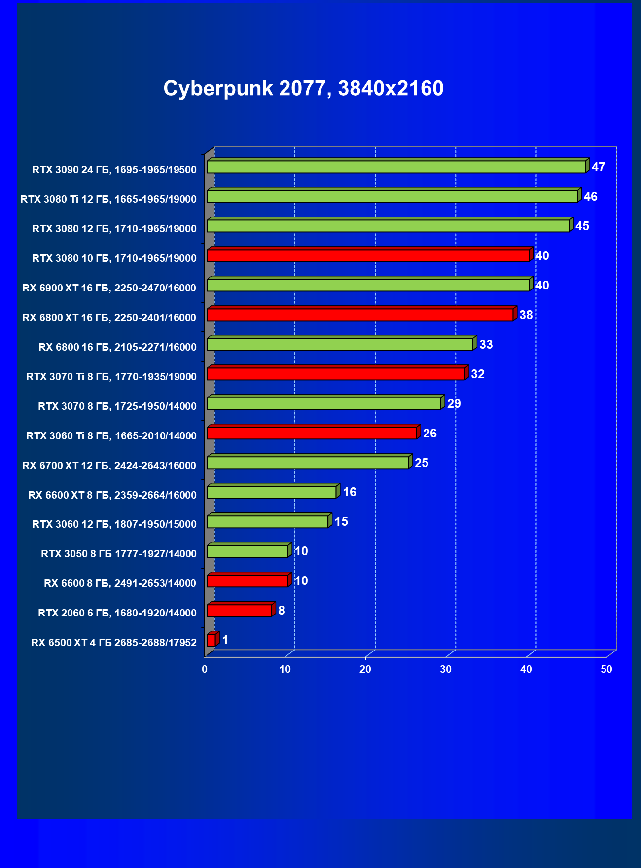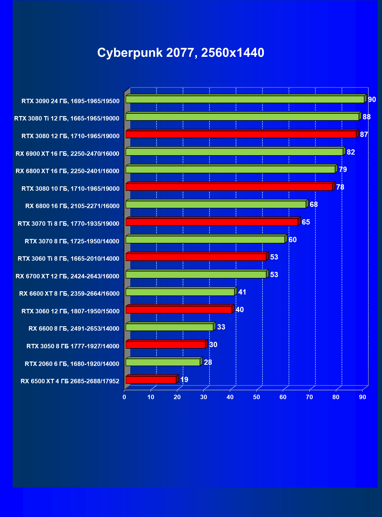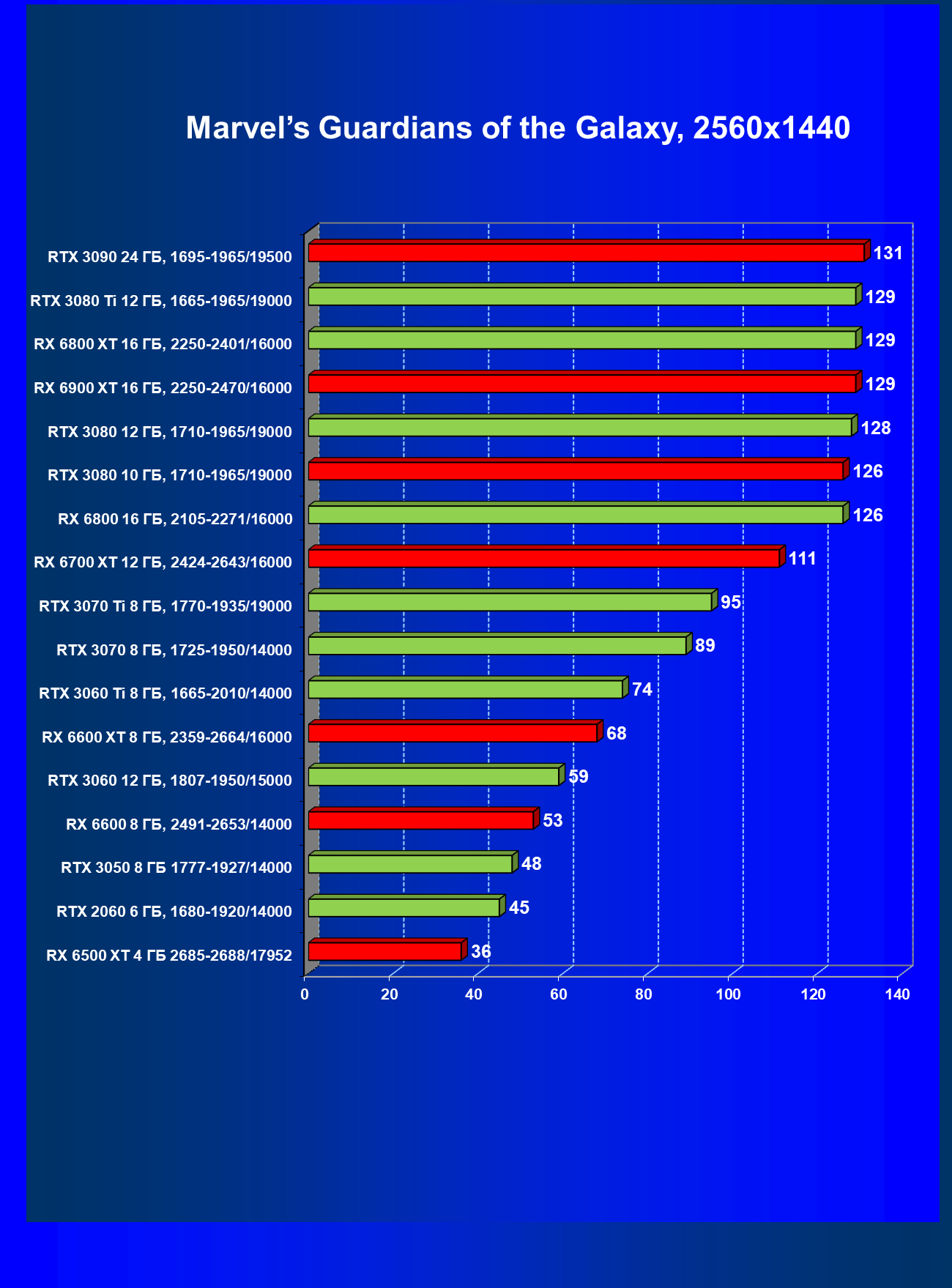 Теперь пройдемся по разрешениям без учета ценового фактора — только чистая производительность. На картинке ниже приведена производительность без RT.