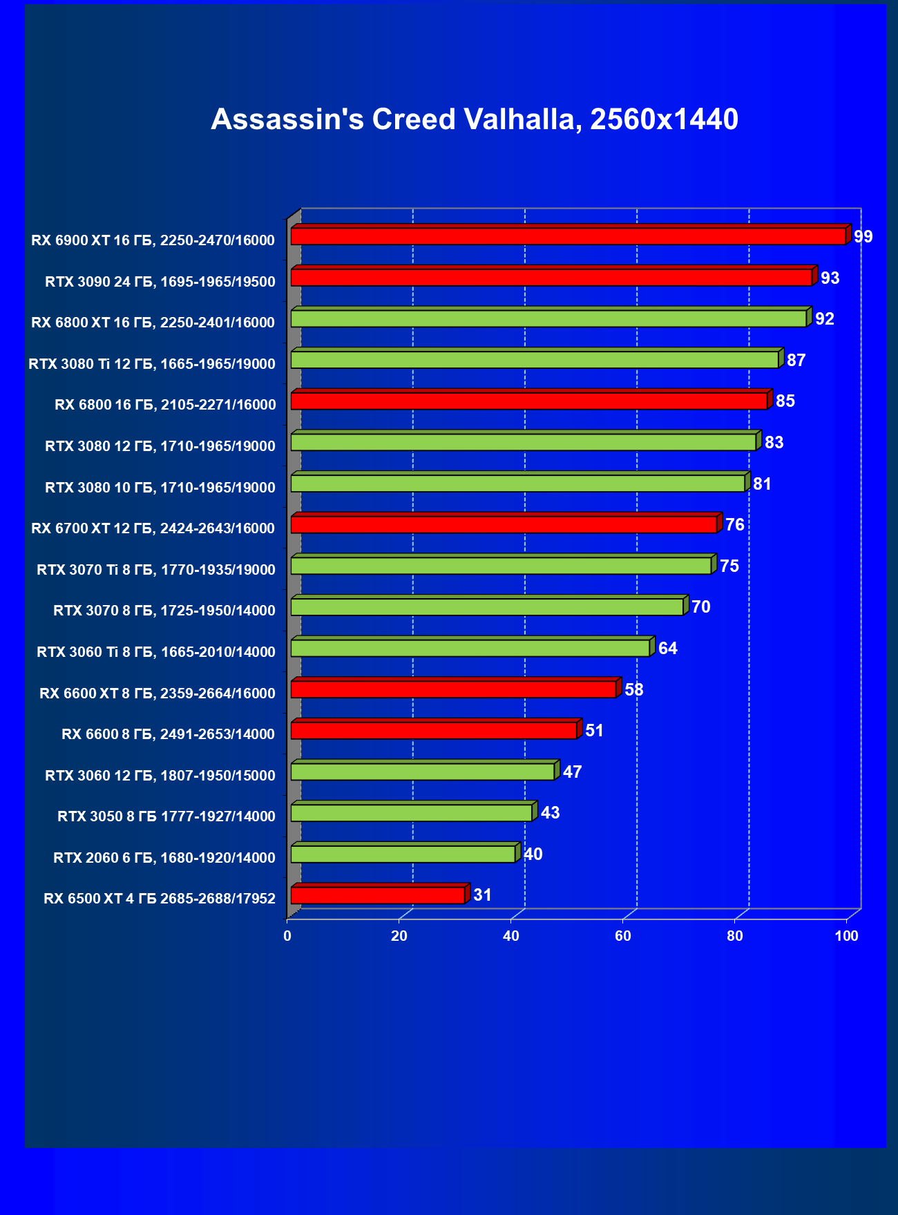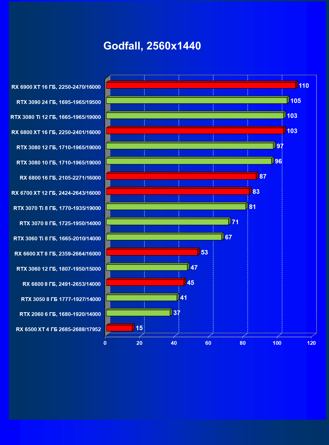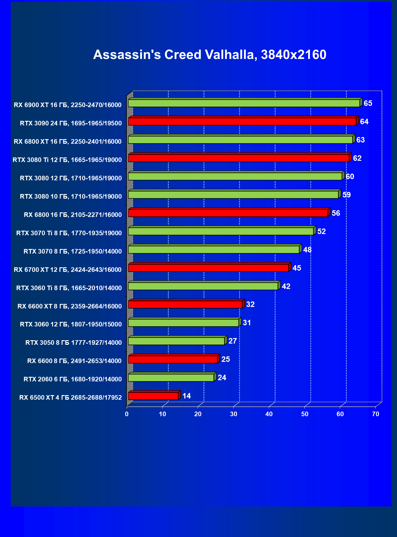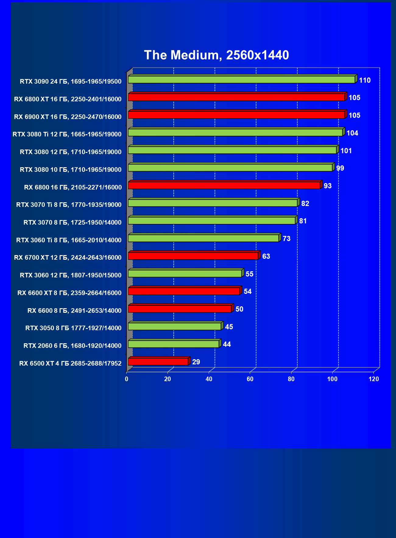 Теперь пройдемся по разрешениям без учета ценового фактора — только чистая производительность. На картинке ниже приведена производительность без RT.