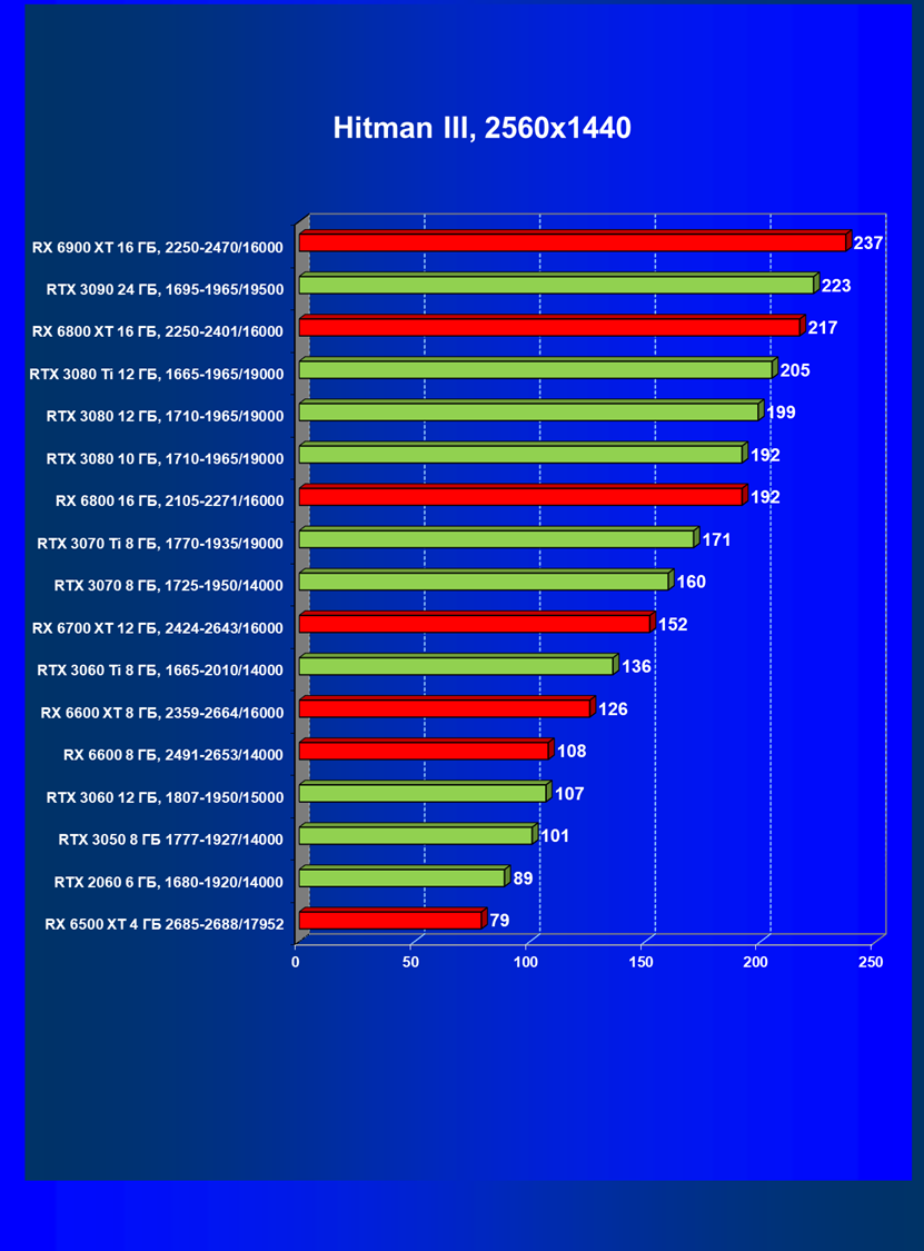 Кроме всех вышеперечисленных ускорителей для разрешения 2.5К при максимальном качестве картинки в классических играх с растеризацией подойдут прежде всего GeForce RTX 3060 Ti и Radeon RX 6700 XT (в ряде игр они могут замахнуться и на 4К), а если мы говорим об играх с RT, то именно в этом разрешении хорошо проявят себя Radeon RX 6900 XT и Radeon RX 6800 XT. Radeon RX 6600 XT весьма неплох для этого разрешения, но только без RT и не во всех играх (а уж 4К явно не для него). GeForce RTX 3060 и представители предыдущего поколения GeForce RTX 2070 Super/2070/2060 Super и Radeon RX 5700 XT также неплохо справляются с 2560×1440 (правда, уже с оговорками).