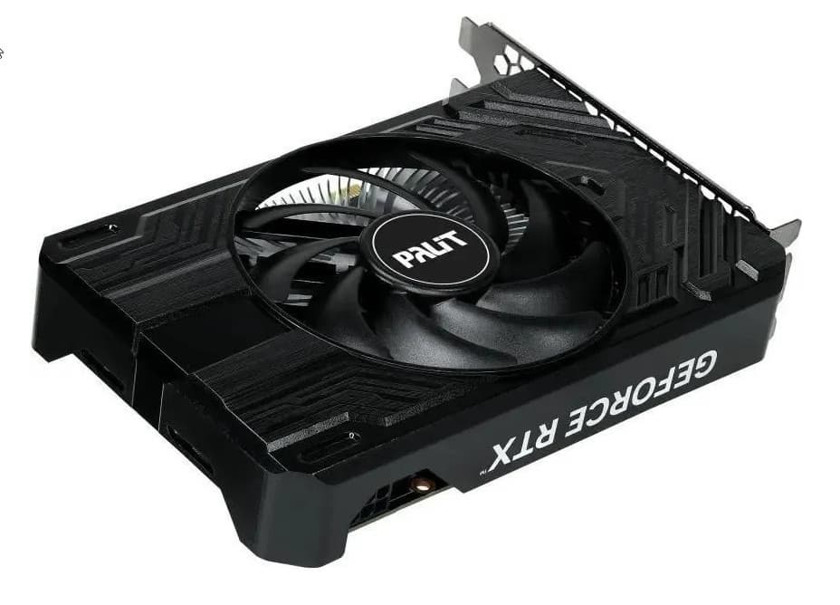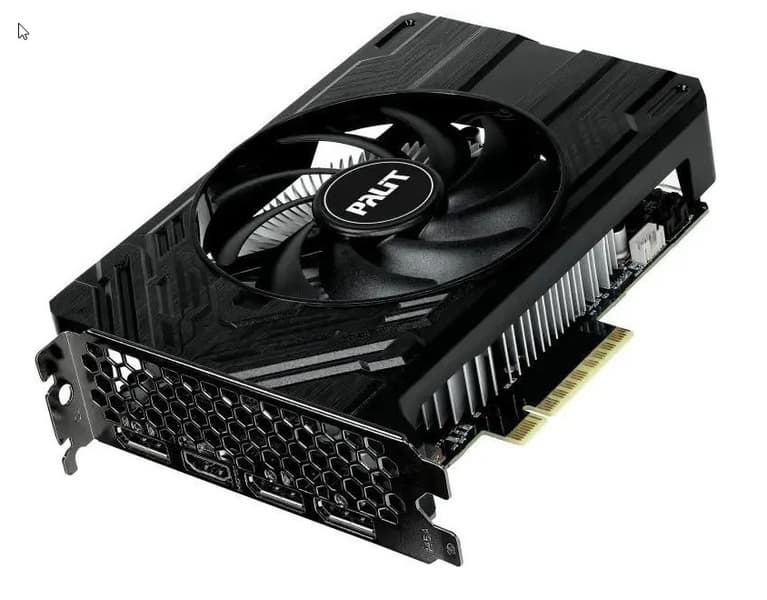 Выбранная нами карта Palit имеет очень компактные размеры, она подходит и для миниатюрных корпусов, созданных под платы форм-фактора Mini-ITX, но требует 2 слота для размещения. Карта имеет стандартный набор видеовыходов (3 DP 1.4a и 1 HDMI 2.1) и один 8-контактный разъем питания типа PCIe 2.0.