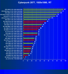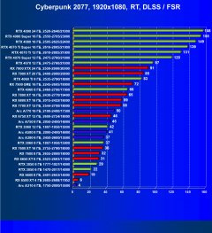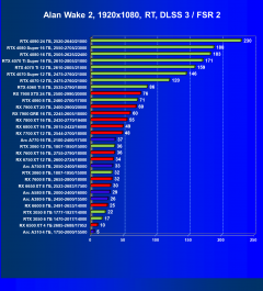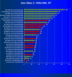 Перечисленные выше видеокарты логично справятся с более низким разрешением даже при включении трассировки лучей и уже не потребуют включения DLSS/FSR/XeSS. Для игр без RT, но с максимальным качеством графики в таком разрешении приемлемо подойдут GeForce RTX 4060 Ti, GeForce RTX 4060, Radeon RX 7700 XT, Radeon RX 6750 XT, Radeon RX 6650 XT, Radeon RX 7600 и Arc A770.