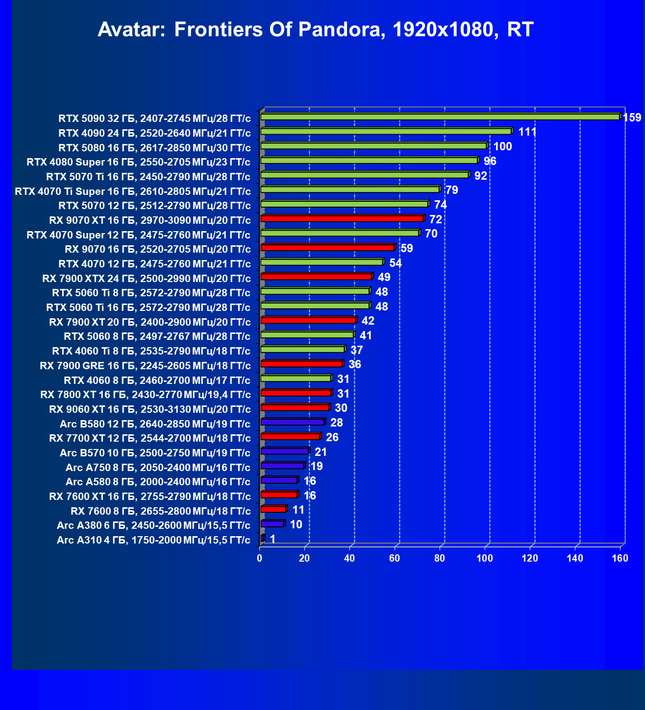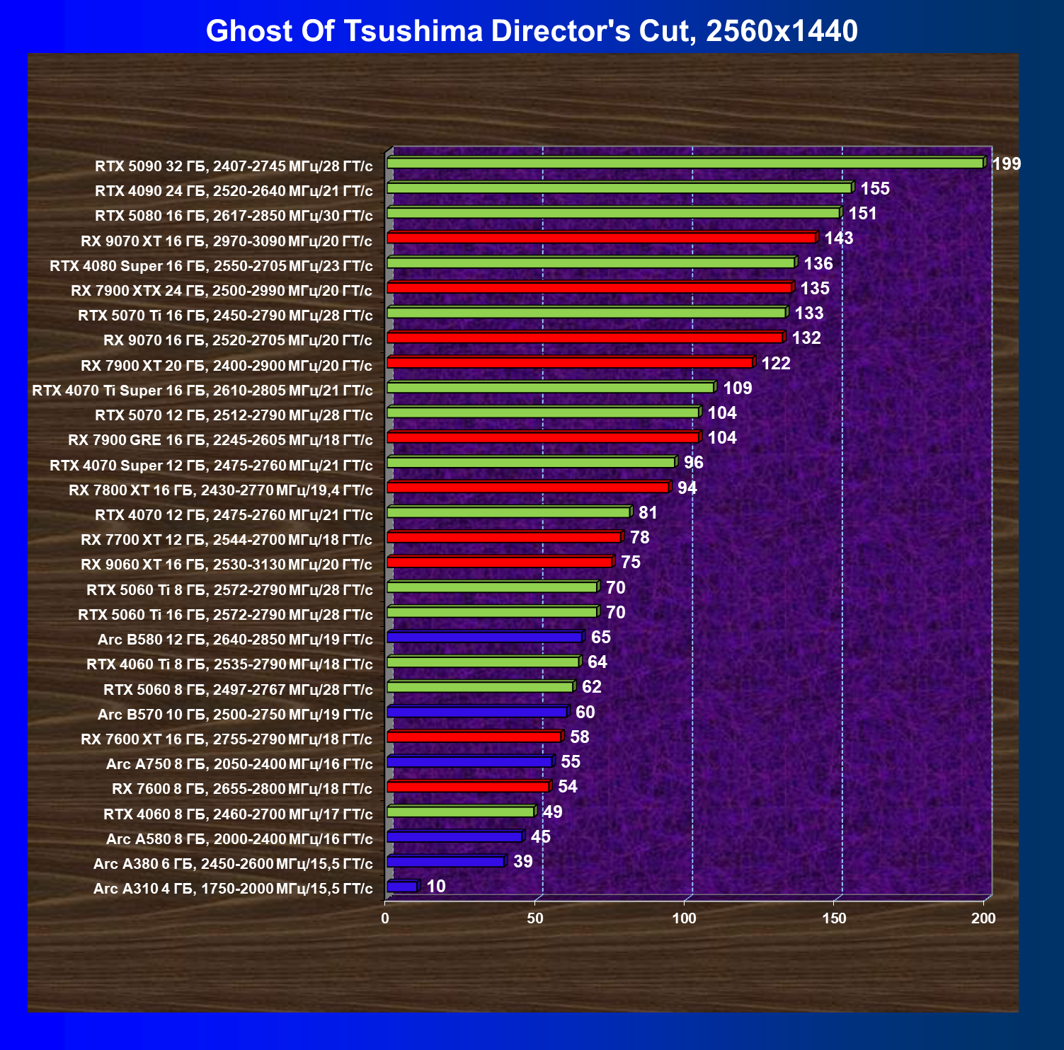 Все упомянутые видеокарты подойдут и для игр на мониторах с более массовым разрешением Full HD. При включении трассировки лучей совместно с DLSS, FSR или XeSS полный комфорт обеспечивают карты уровня Radeon RX 7700 XT, GeForce RTX 4060, Arc B580, а также GeForce RTX 5060.