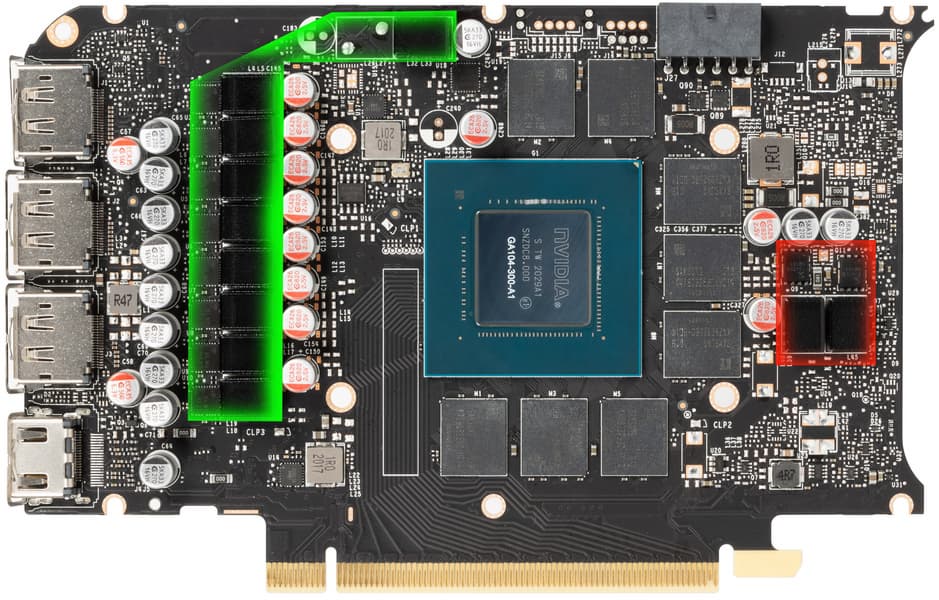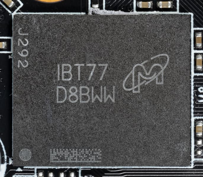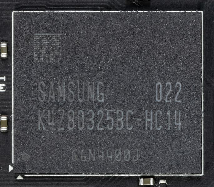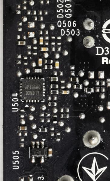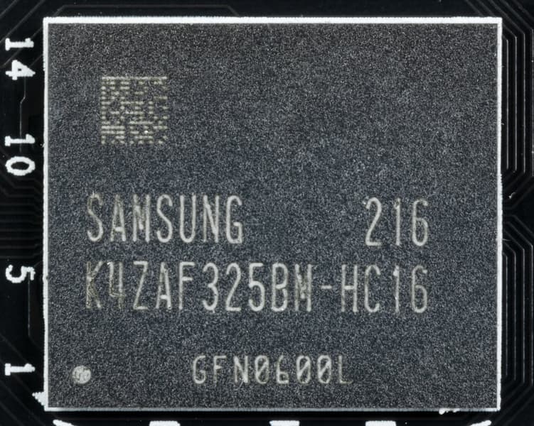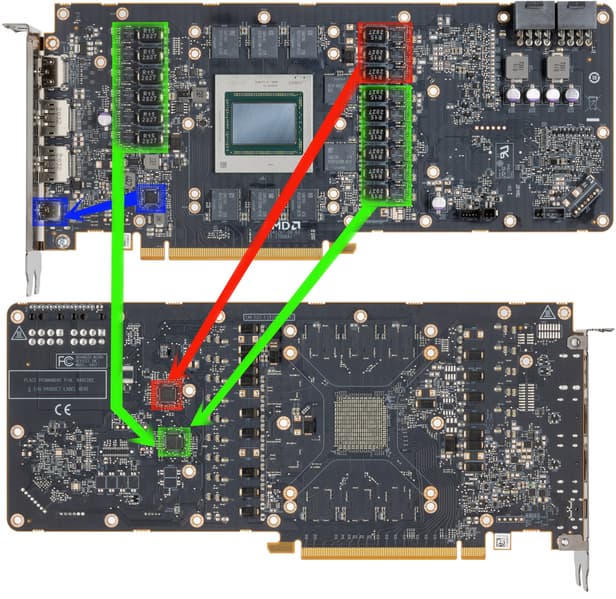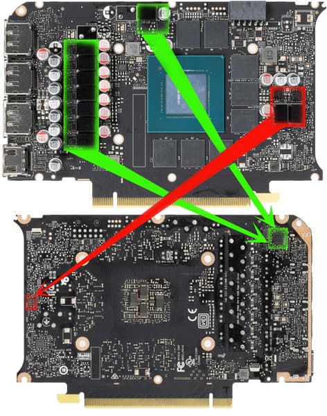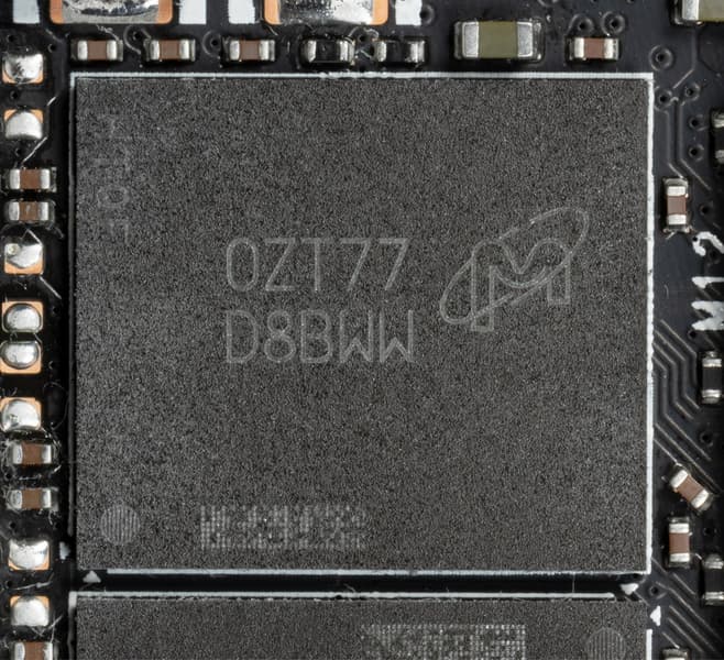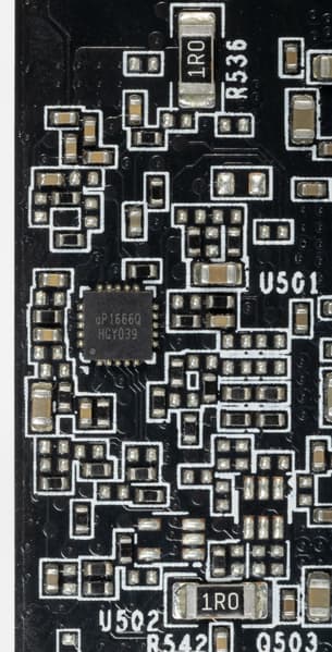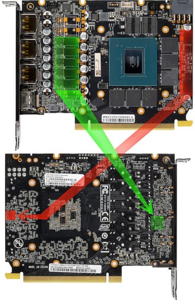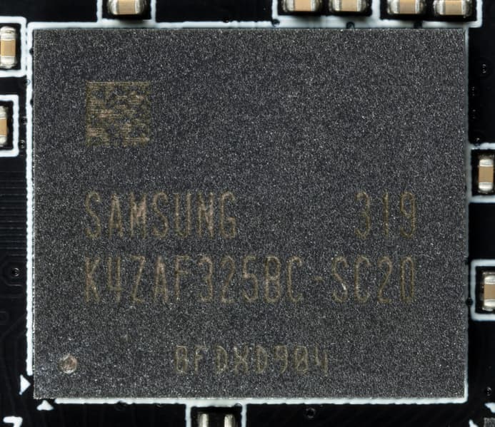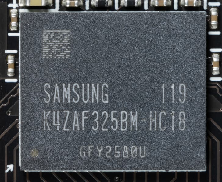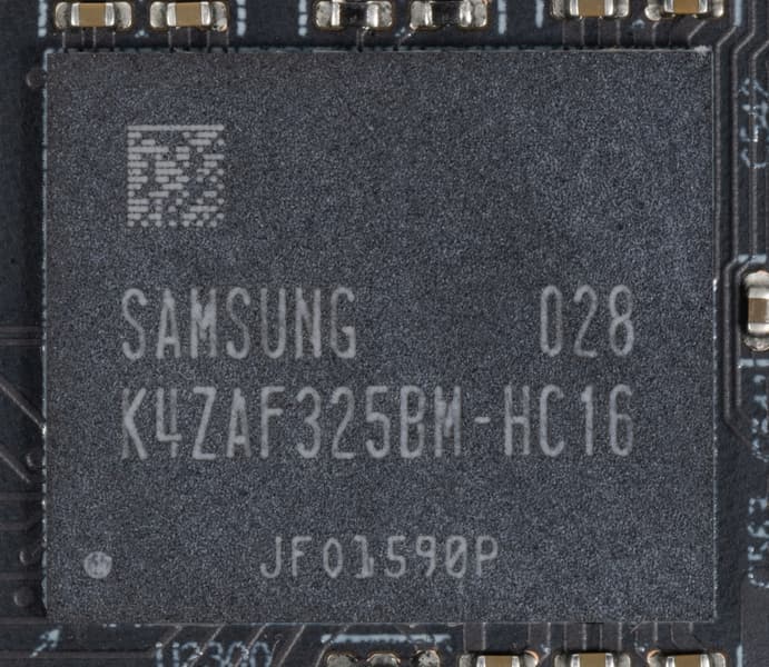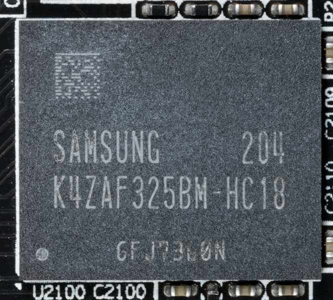 Карта имеет 6 ГБ памяти GDDR6 SDRAM, размещенной в 3 микросхемах по 16 Гбит на лицевой стороне PCB. Микросхемы памяти Samsung (GDDR6) рассчитаны на номинальную частоту работы в 2000 (16000) МГц.