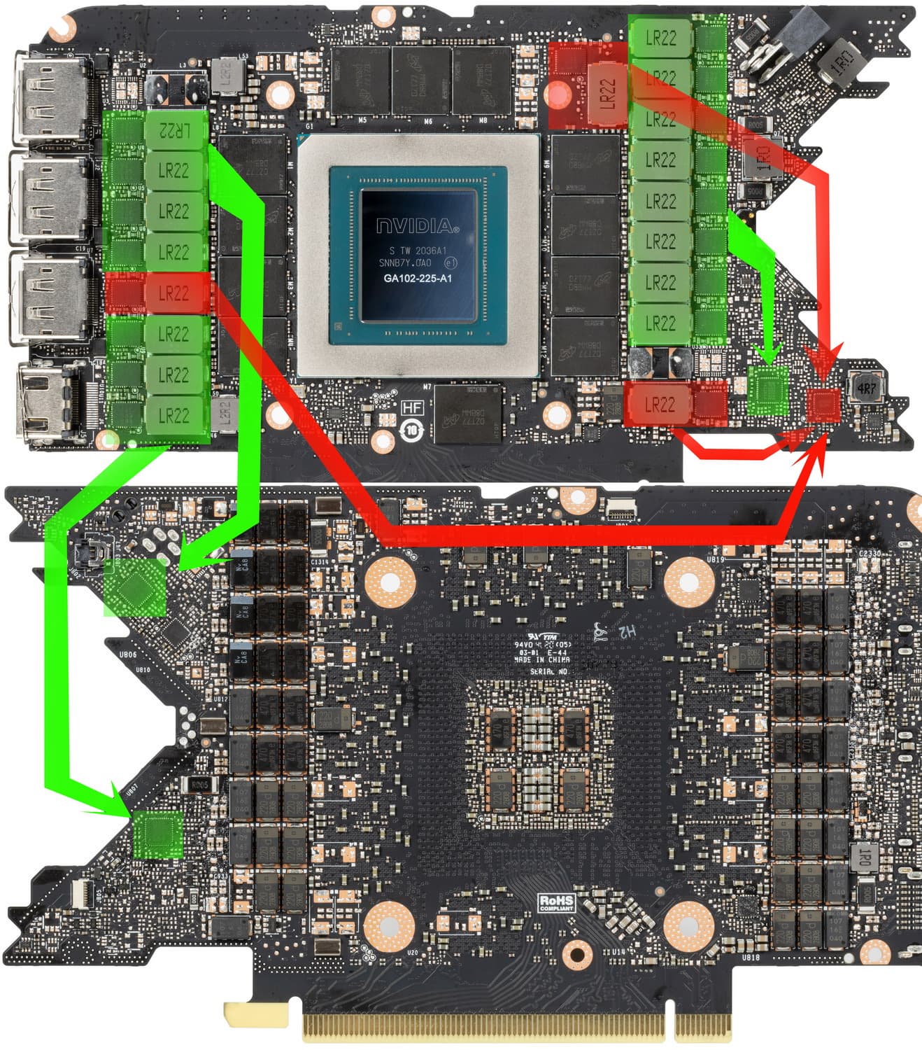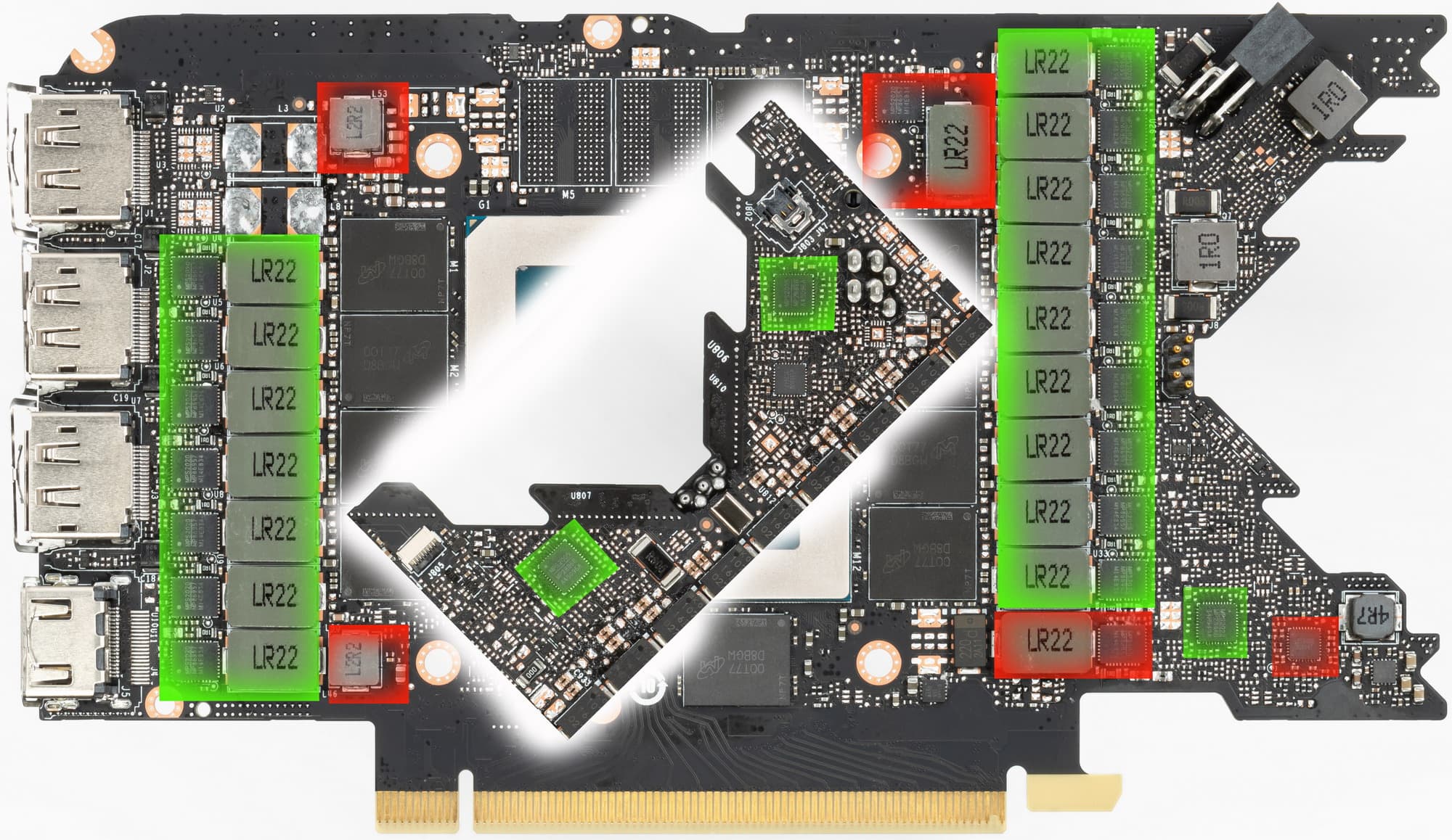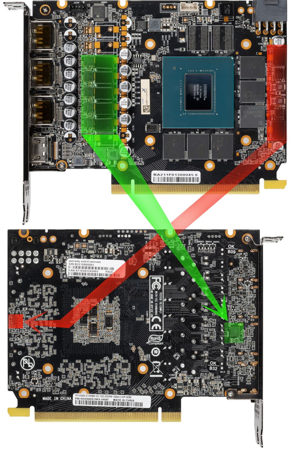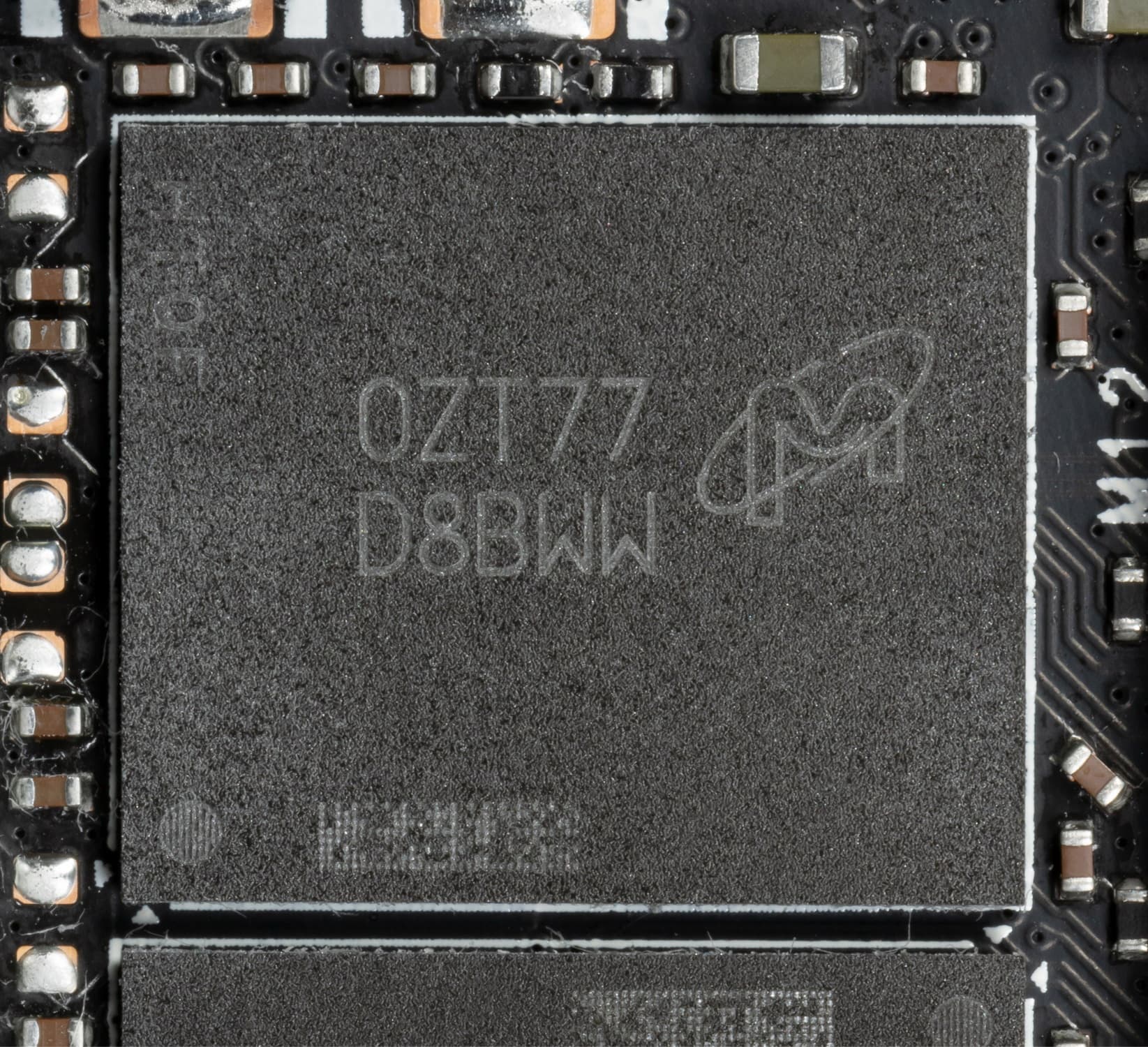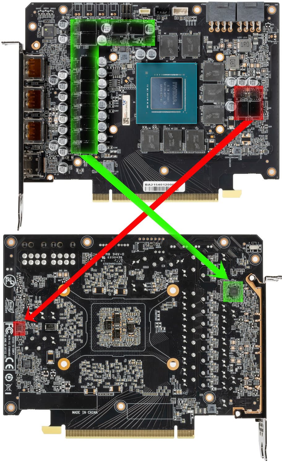 Карта имеет 6 ГБ памяти GDDR6 SDRAM, размещенной в 3 микросхемах по 16 Гбит на лицевой стороне PCB. Микросхемы памяти Samsung (GDDR6) рассчитаны на номинальную частоту работы в 2000 (16000) МГц.