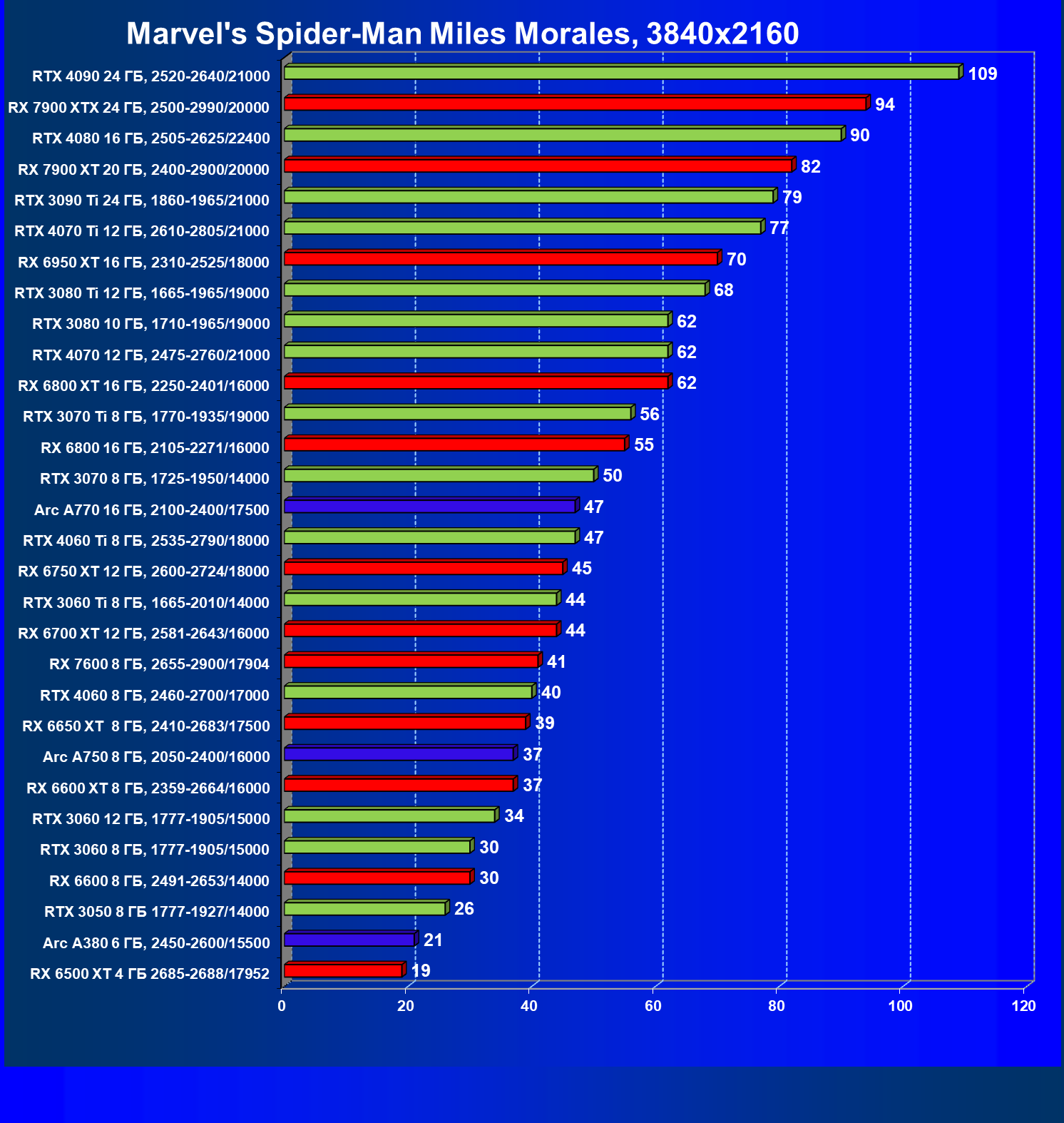 Теперь пройдемся по разрешениям без учета ценового фактора. Чистая производительность.
