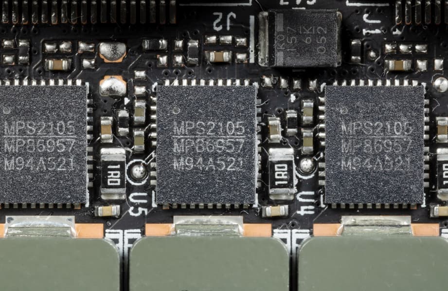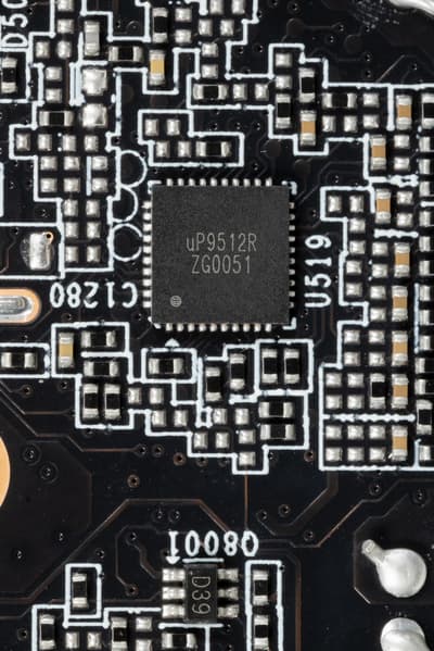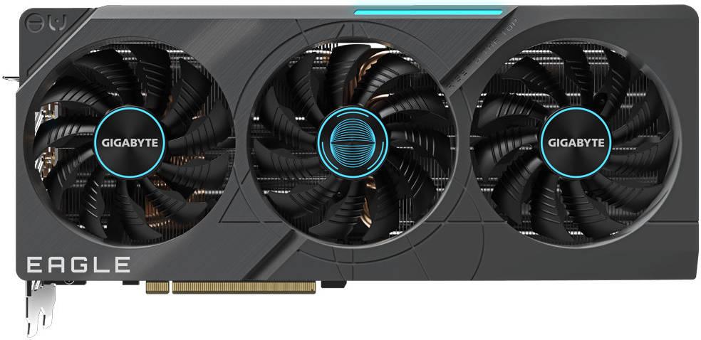 Выбранная модель Gigabyte имеет стандартные для флагманских карт размеры (длина — 30 см, толщина — 5,8 см), занимает 3 слота в системном блоке. СО очень эффективная и не шумная. Питание карта получает через 16-контактный разъем питания PCIe 5.0 (12VHPWR), в комплекте поставки имеется переходник на такой разъем с двух обычных 8-контактных. Набор видеовыходов стандартный: три DP 1.4a и один HDMI 2.1.