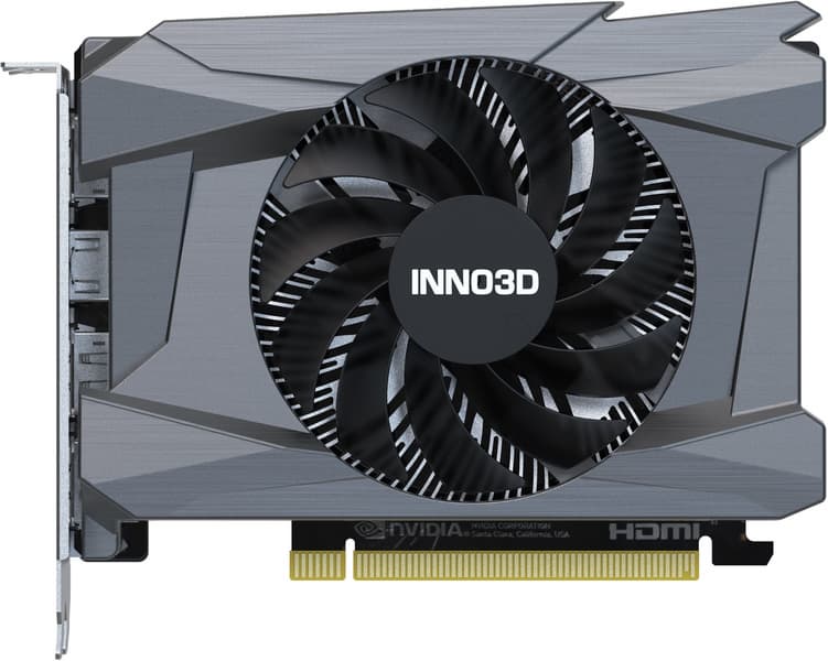 Выбранная карта Inno3D имеет очень компактные размеры, позволяющие использовать ее даже в корпусах форм-фактора Mini-ITX, и при этом СО не слишком громкая. Карта имеет 1 разъем питания (8-контактный) и стандартный набор видеовыходов (три DP 1.4a и один HDMI 2.1).