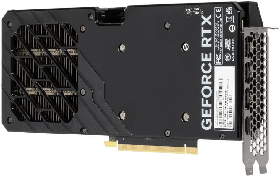 Выбранная карта Palit GeForce RTX 4070 Dual OC (12 ГБ) имеет плюс в виде сравнительно компактных габаритов, двухслотового размещения в системном блоке, и при этом СО не шумная. Заметим, что для данной карты Palit можно самостоятельно модифицировать кожух СО с помощью фирменной концепции Palit «Maker» — с последующей печатью на 3D-принтере. Карта может потреблять до 200 Вт, имеет обычный набор видеовыходов (три DP 1.4a, один HDMI 2.1), требует использовать стандартный 8-контактный разъем питания.