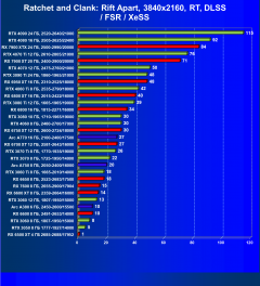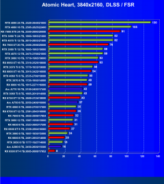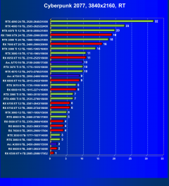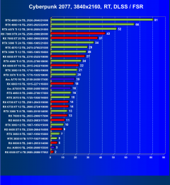 Менее производительные карты уровня GeForce RTX 4060 Ti, GeForce RTX 3070 Ti, GeForce RTX 3070 и Radeon RX 6800 демонстрируют в разрешении 4K приемлемый FPS не во всех играх даже без включения RT (но при максимальных настройках графики), и желательно будет включать DLSS/FSR/XeSS.