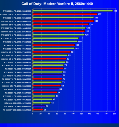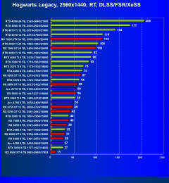 Для игр с RT в этом разрешении потребуются GeForce RTX 4060 Ti, GeForce RTX 3070 Ti и Radeon RX 6800 (а также более производительные карты). Задействование DLSS/FSR/XeSS совместно с RT позволит поиграть в 2.5K с помощью GeForce RTX 3070, Radeon RX 6750 XT и некоторых близких к ним ускорителей, но далеко не во все игры.