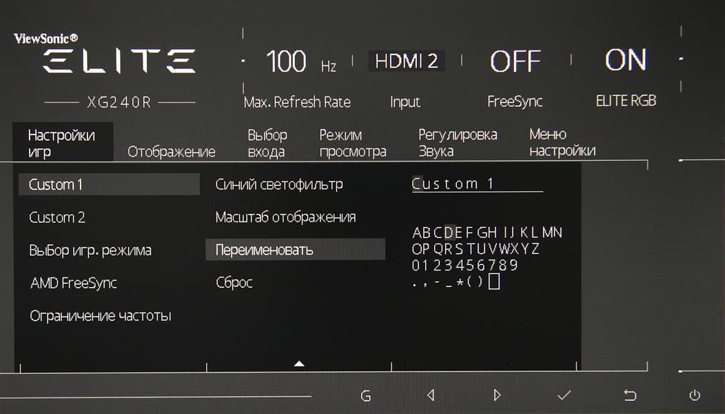 В двух игровых профилях можно сохранить пользовательское сочетание настроек и задать этим профилям свои названия.