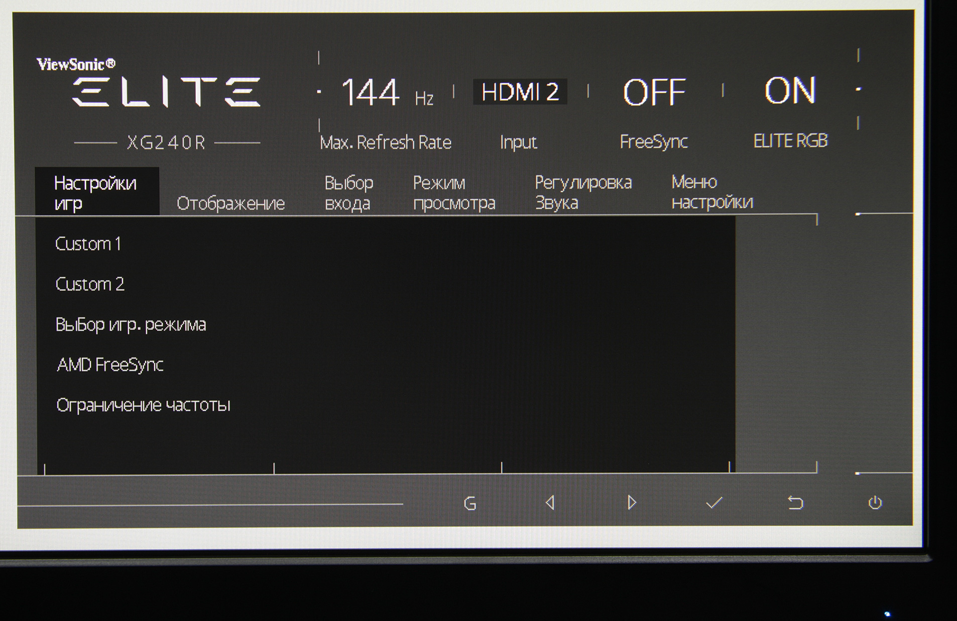 В этом мониторе реализована поддержка технологии AMD FreeSync по входам DisplayPort и HDMI. Диапазон поддерживаемых частот, который указывается на панели настроек видеокарты, равен 48—144 Гц для режимов с кадровой частотой 144 Гц. Отметим, что при высокой частоте обновления (от 120 Гц и выше) видимая плавность сохраняется всегда, поэтому особой необходимости в FreeSync уже нет.