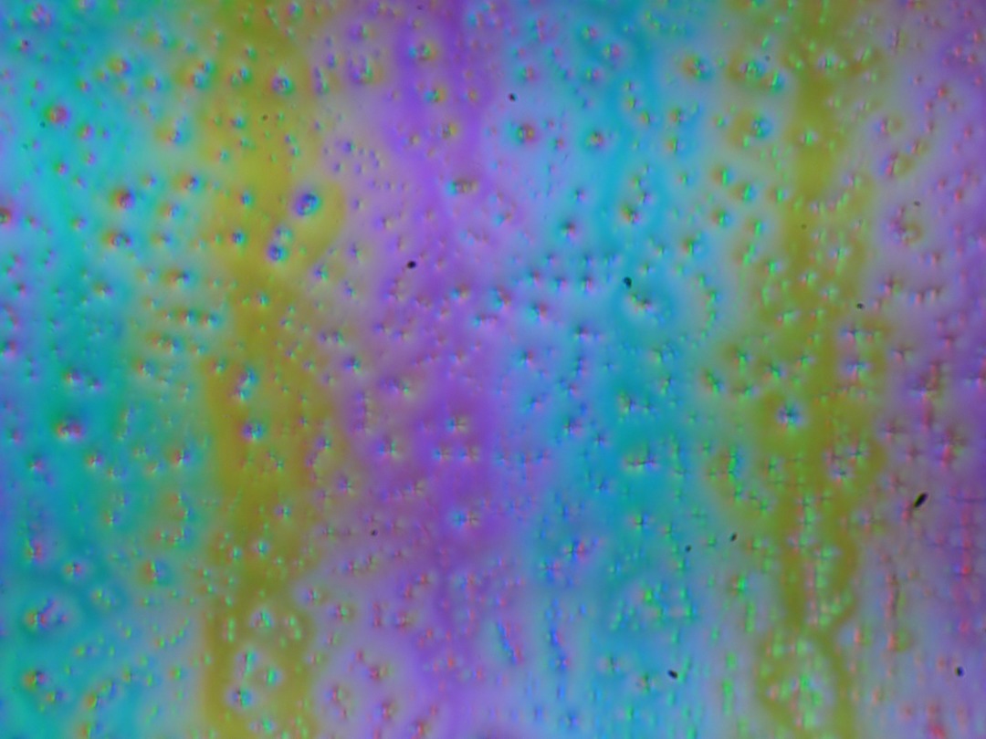 Фокусировка на поверхности экрана выявила хаотично расположенные микродефекты поверхности, отвечающие собственно за матовые свойства: