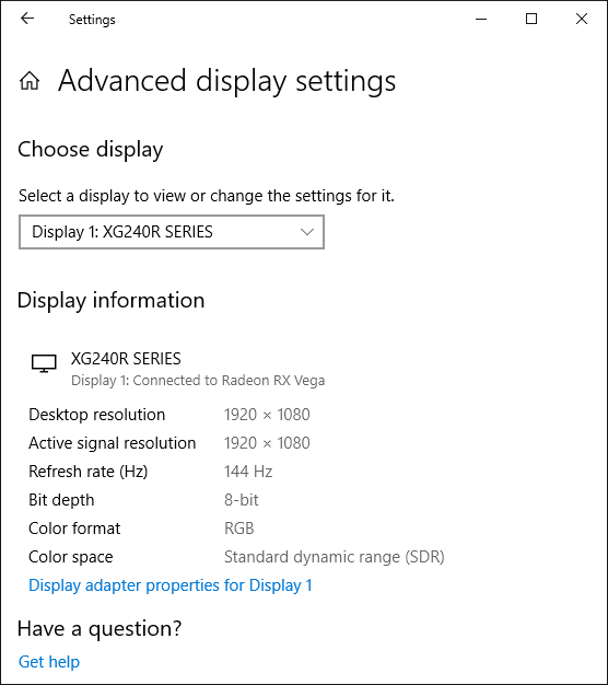 При подключении к компьютеру по DisplayPort и HDMI поддерживалось разрешение до 1920×1080 при 144 Гц кадровой частоты на вход, и вывод изображения на экран также осуществлялся с этой частотой.
