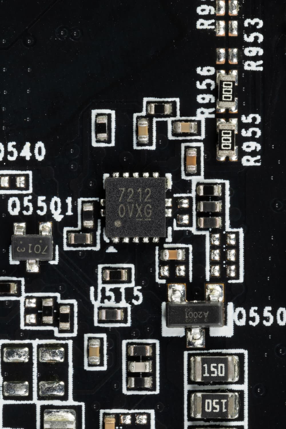 На лицевой стороне платы имеется контроллер uS5650Q (uPI Semi), который отвечает за мониторинг карты (отслеживание напряжений и температуры).
