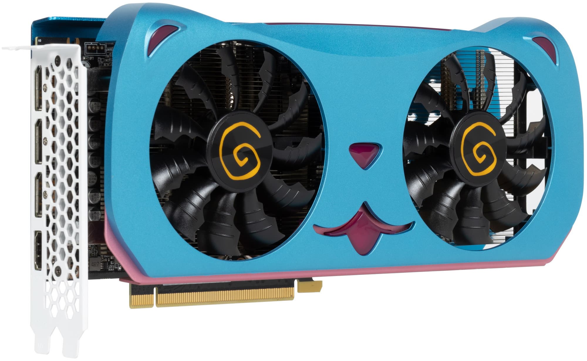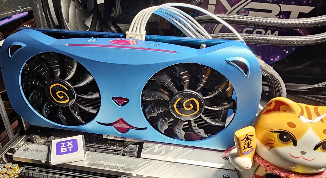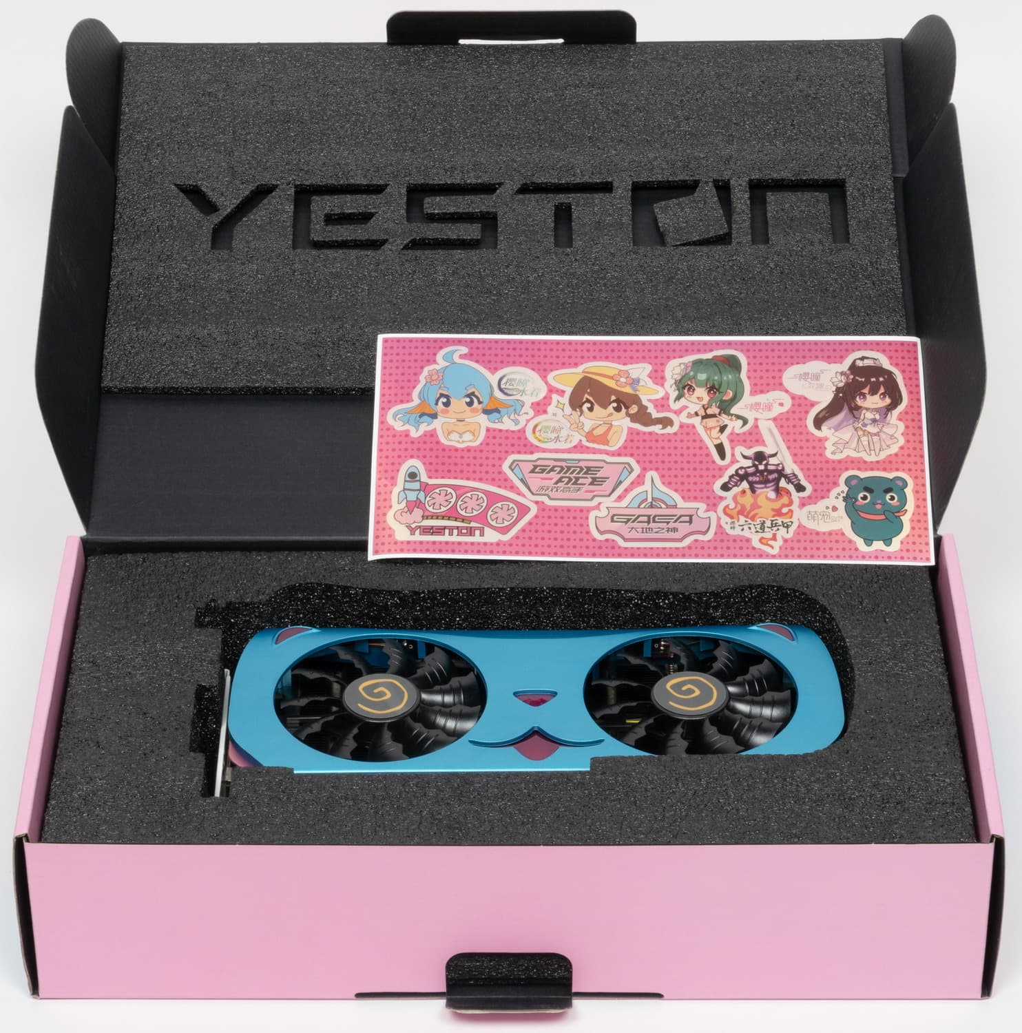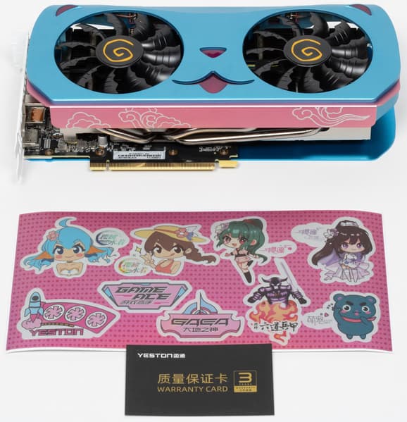 Продукты Yeston в КНР популярны в том числе из-за дизайна ряда серий. У нас уже были на рассмотрении карты, дизайн которых посвящен популярным в КНР анимационным сериалам. Именно у Yeston мы встречаем оригинальные решения, над которыми трудились не только местные инженеры-схемотехники, но и местные художники-дизайнеры. Опять же, в Китае очень популярны всякого рода «мимимишные» выдуманные герои из мультфильмов и комиксов — котики, собачки и так далее. И рассматриваемая нами сегодня видеокарта отличается именно мордочкой такого вот «котика».