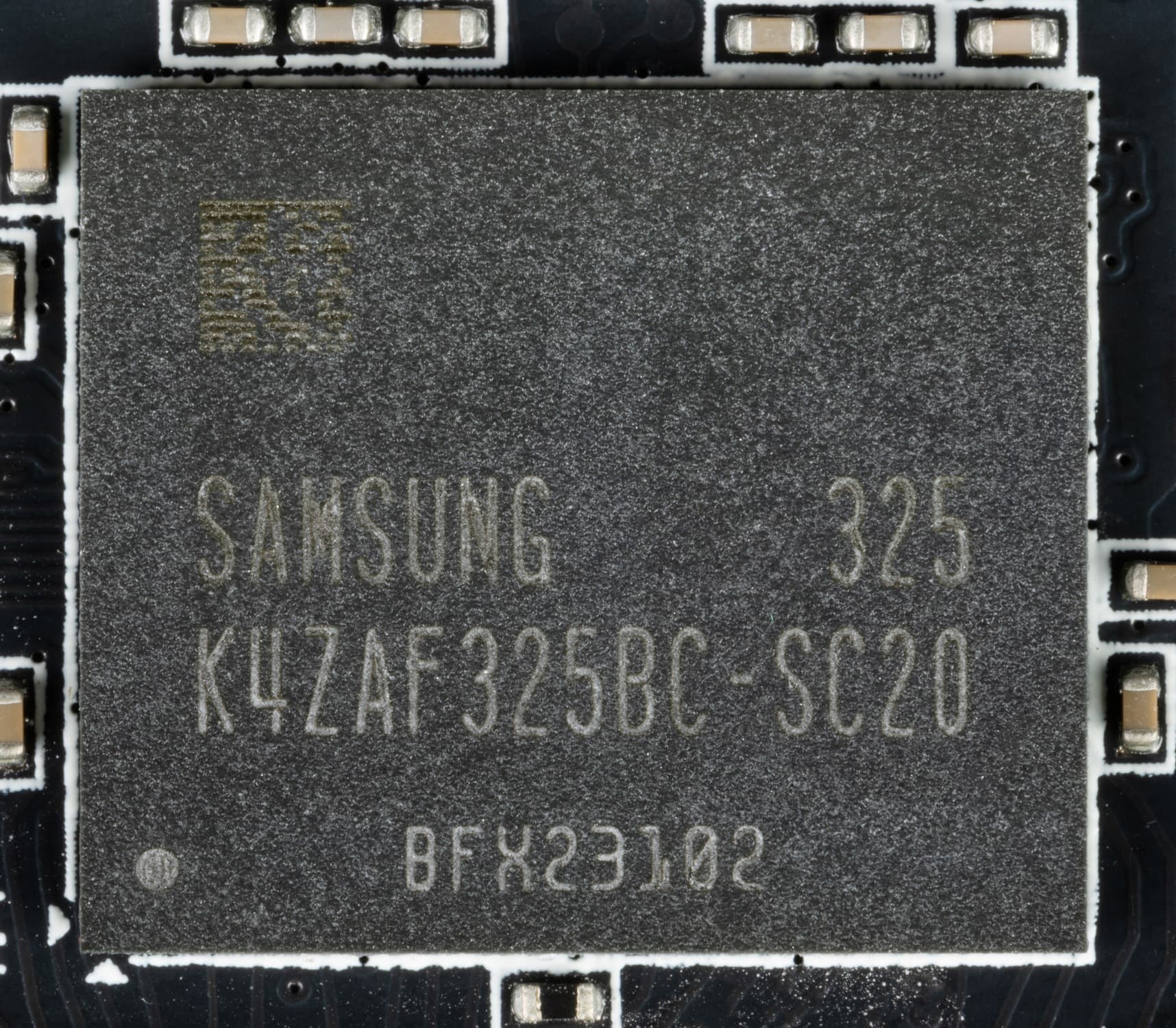 Карта имеет 8 ГБ памяти GDDR6 SDRAM, размещенной в 4 микросхемах по 16 Гбит на лицевой стороне PCB. Микросхемы памяти Samsung (K4ZAF325BC-SC20) рассчитаны на номинальную частоту работы в 2500 (20000) МГц.