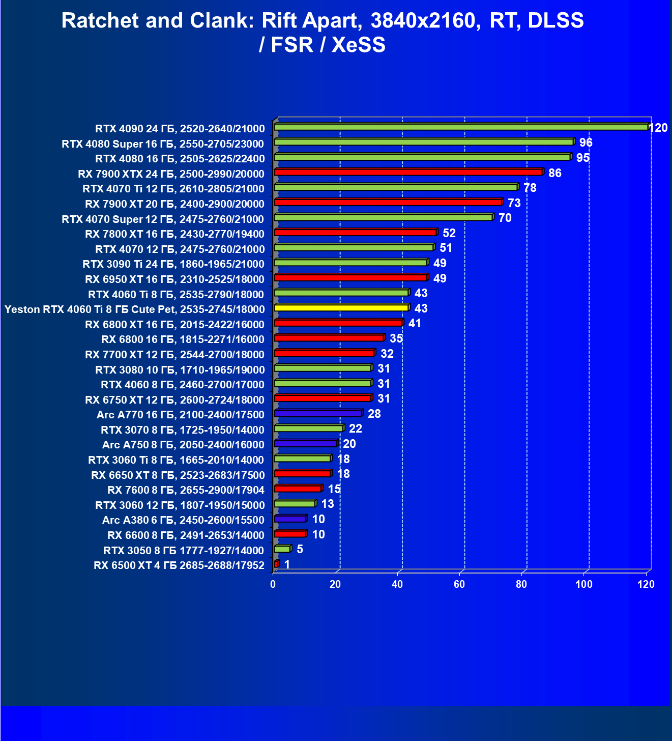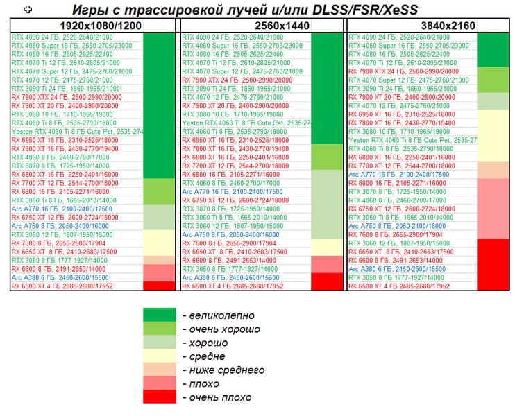 - Вариант рейтинга iXBT.com с включением RT/DLSS/FSR/XeSS