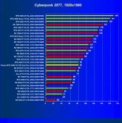 | 21 | RX 6750 XT 12 ГБ, 2600—2724/18000 | 618 | 133 | 46 500 |