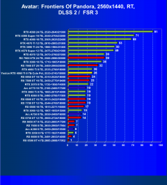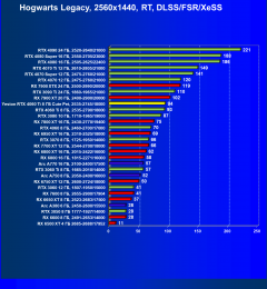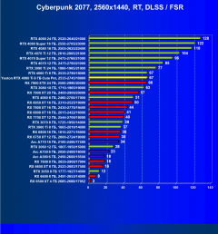 Результаты тестов со включенной аппаратной трассировкой лучей и/или DLSS/FSR/XeSS в разрешениях 1920×1080, 2560×1440 и 3840×2160