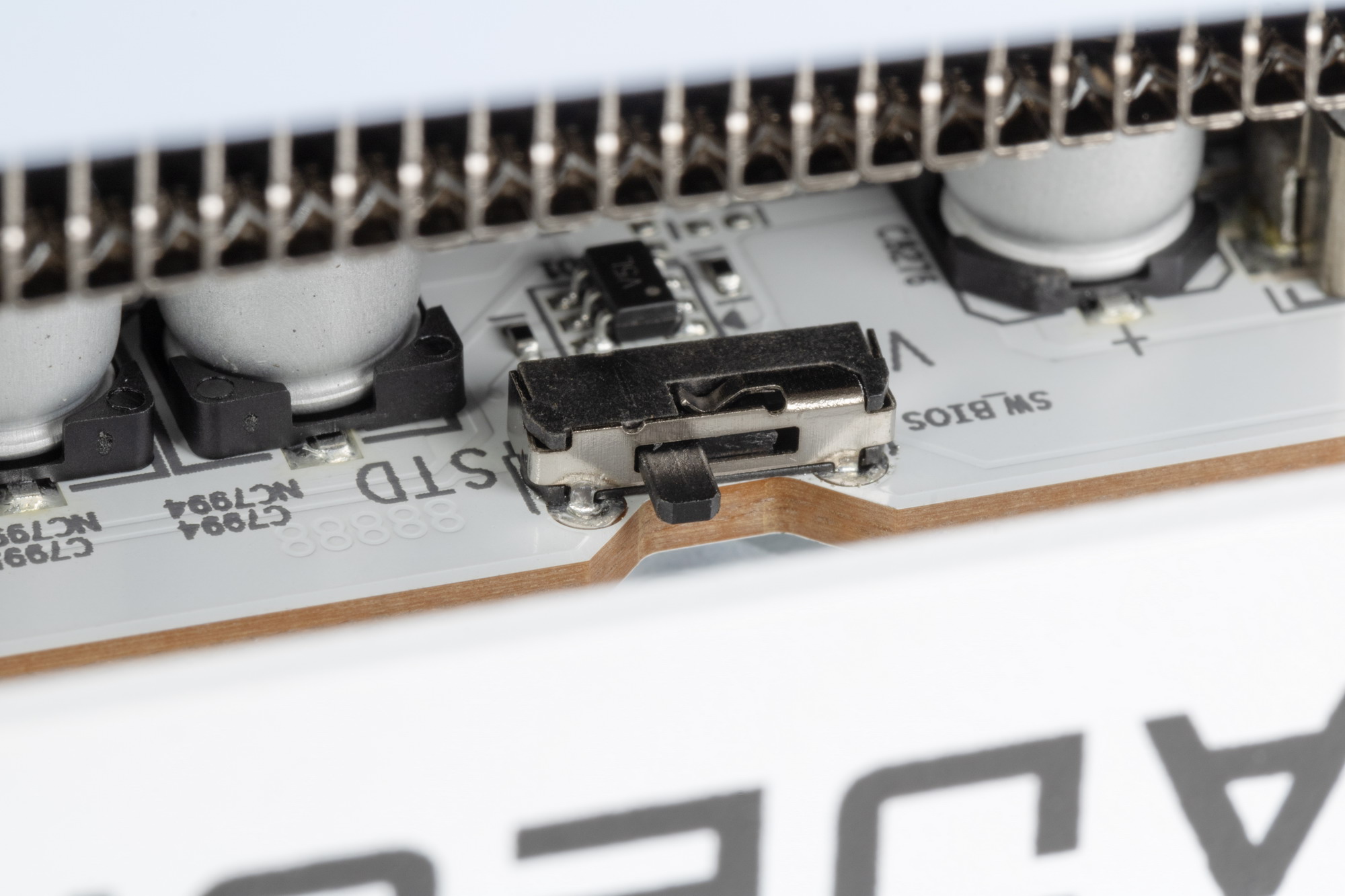К сожалению, на самой задней пластине карты не нанесены обозначения переключателей, и поэтому, чтобы понять — где какой — надо изучать вебсайт Yeston на странице по этой карте.