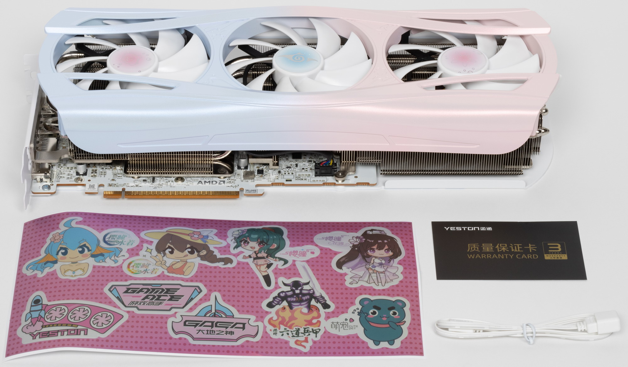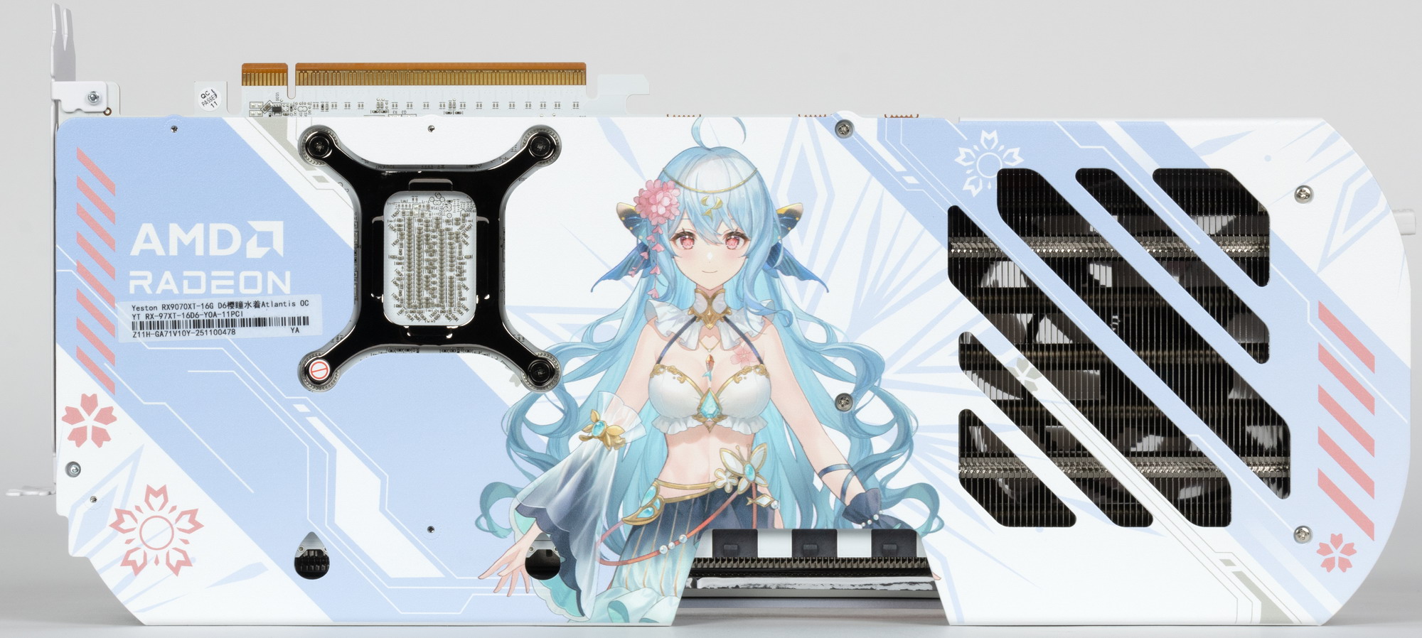 Продукты Yeston в КНР популярны в том числе из-за дизайна ряда серий. У нас уже были на рассмотрении карты, дизайн которых посвящен популярным в КНР анимационным сериалам. Именно у Yeston мы встречаем оригинальные решения, над которыми трудились не только местные инженеры-схемотехники, но и местные художники-дизайнеры. В частности, у компании есть популярная серия Sakura, посвященная (нет, не дереву сакура -) ) героине популярного анимационного сериала, то есть Sakura — имя собственное. Дизайну этой серии свойственны нежные бело-розово-голубые тона. Мы уже ранее изучали пару видеокарт из данной серии (на базе Nvidia GeForce), вот и теперь настала очередь изучить вариант Atlantis.