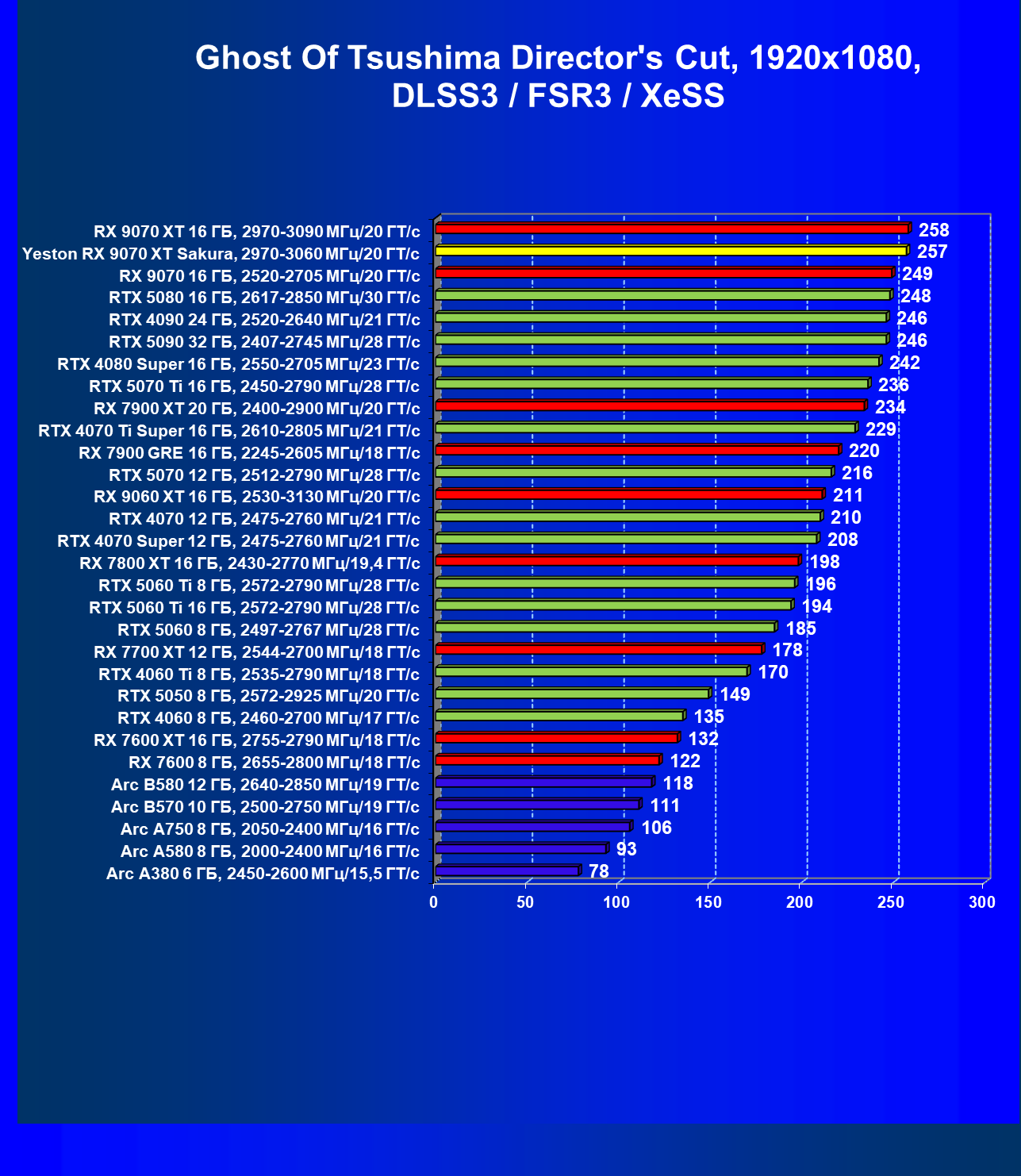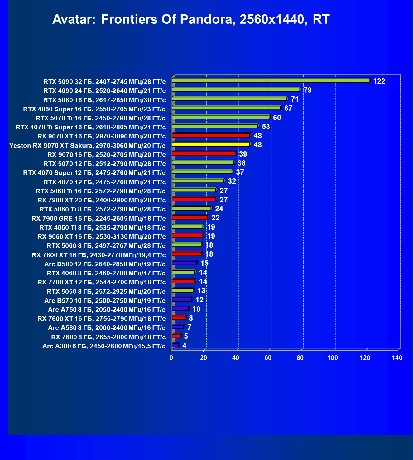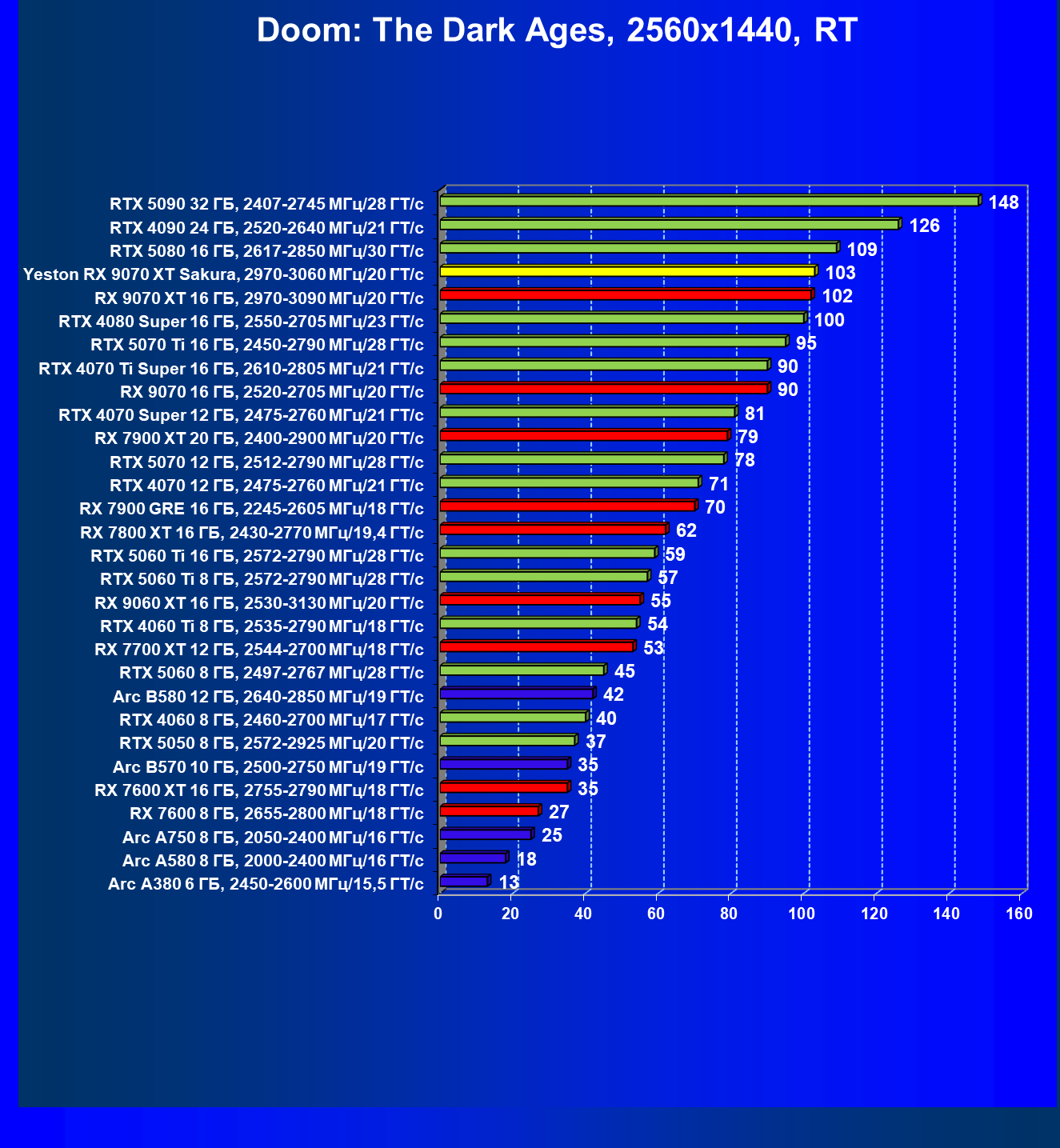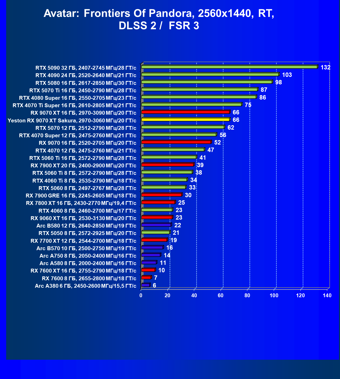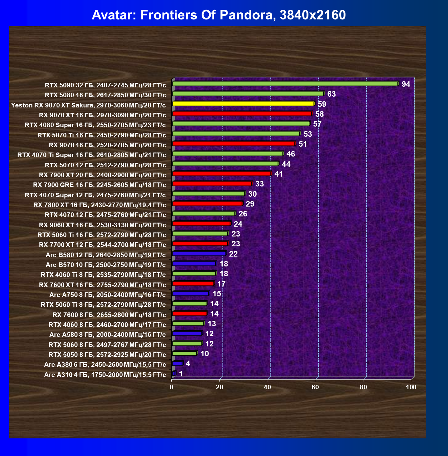 | 07 | Yeston RX 9070 XT Sakura, 2970—3060 МГц/20 ГТ/с | 5000 | 649 | 77 000 |