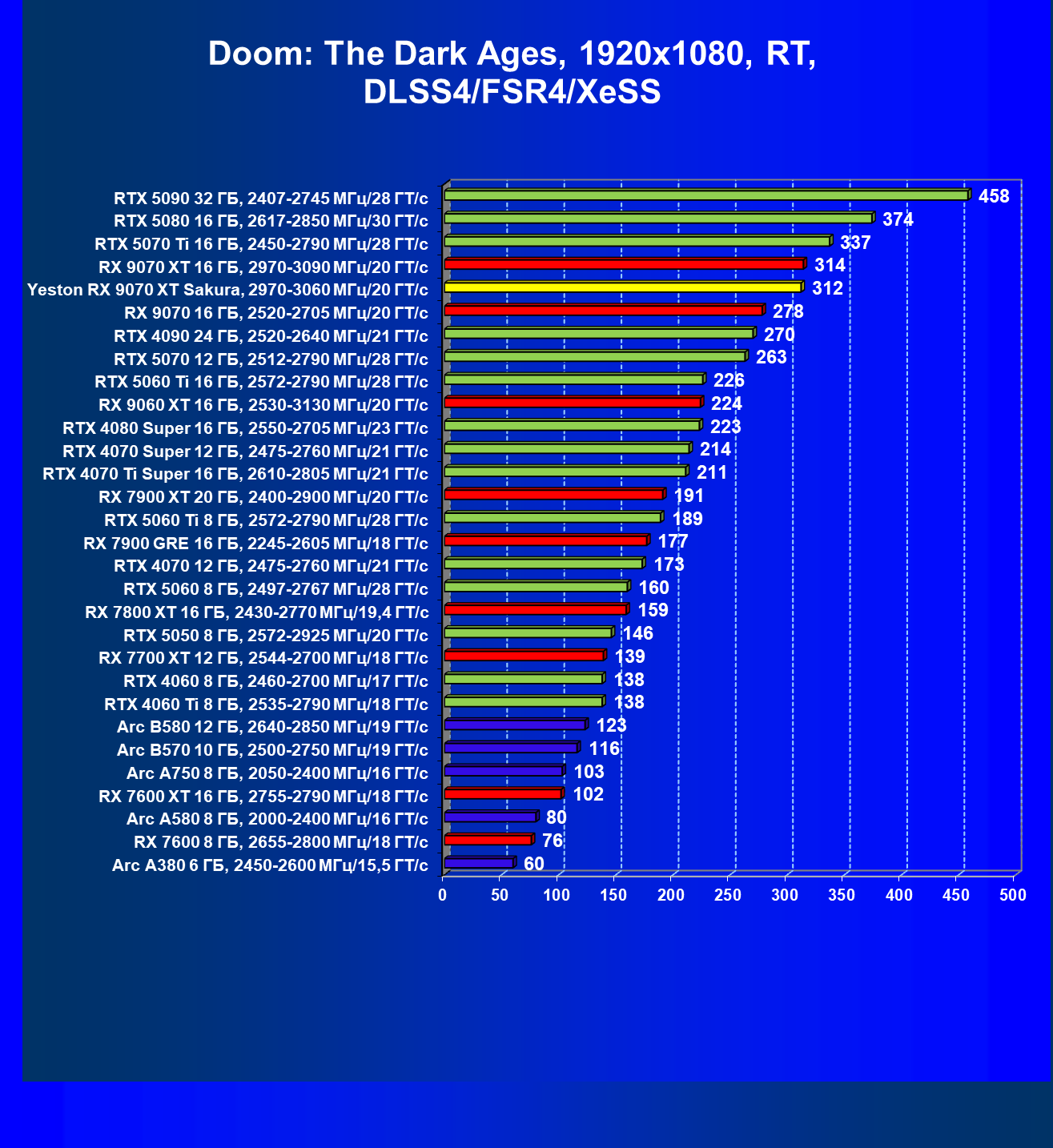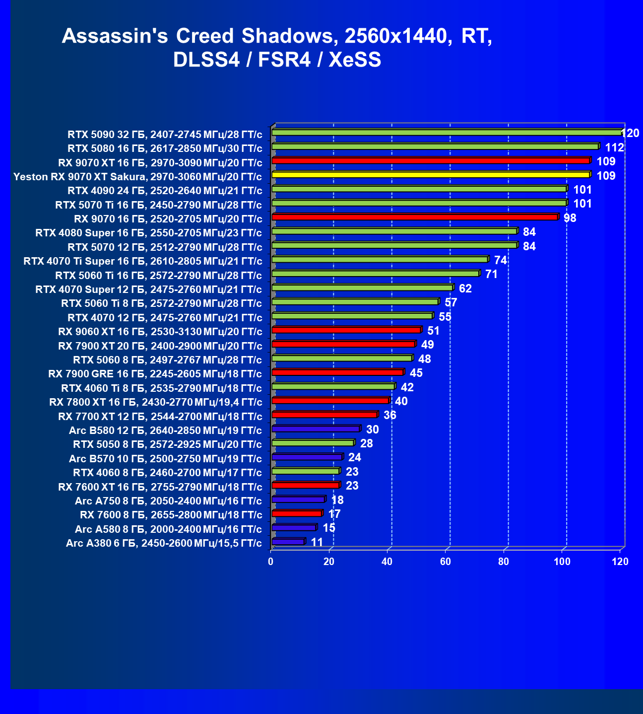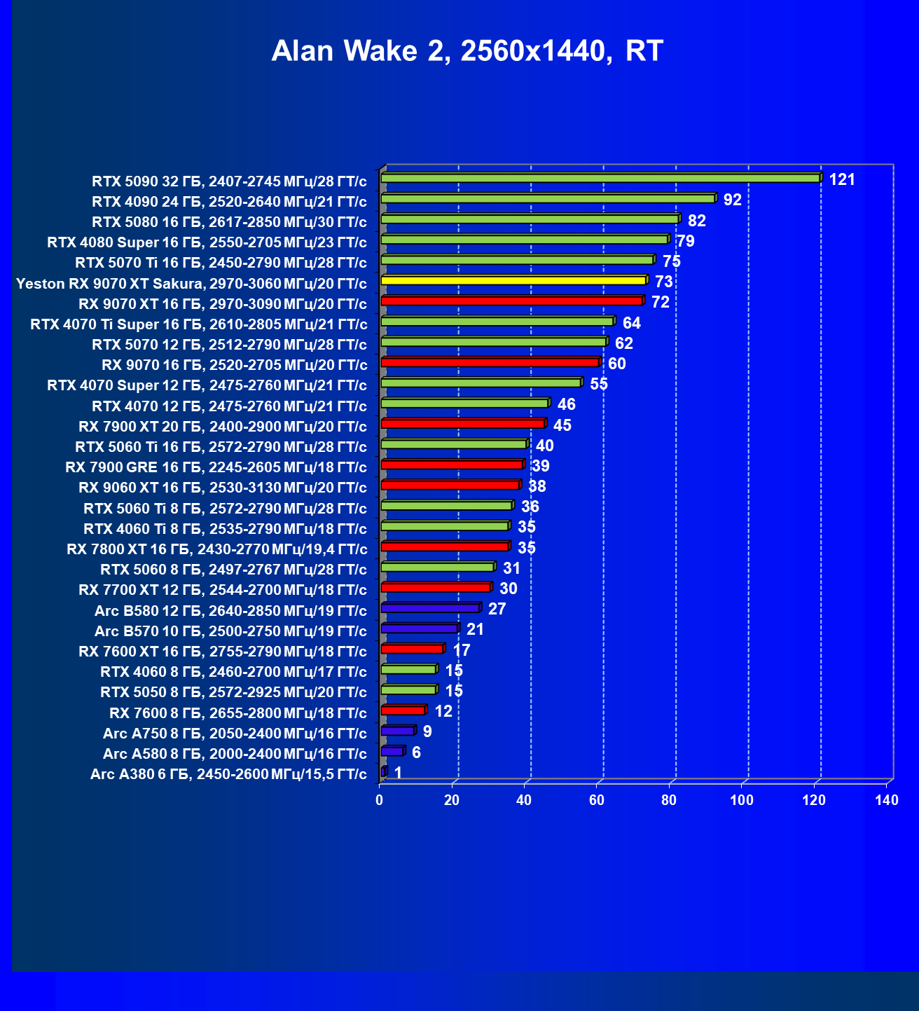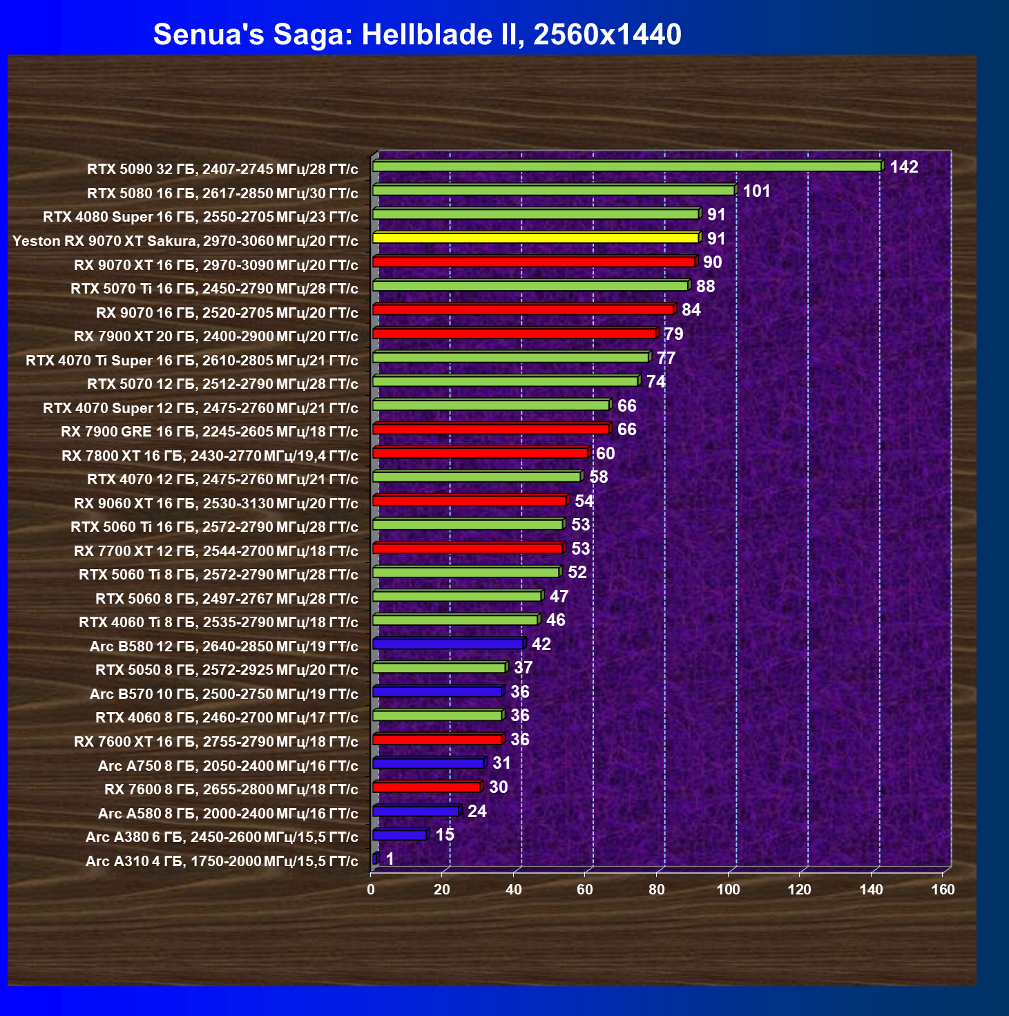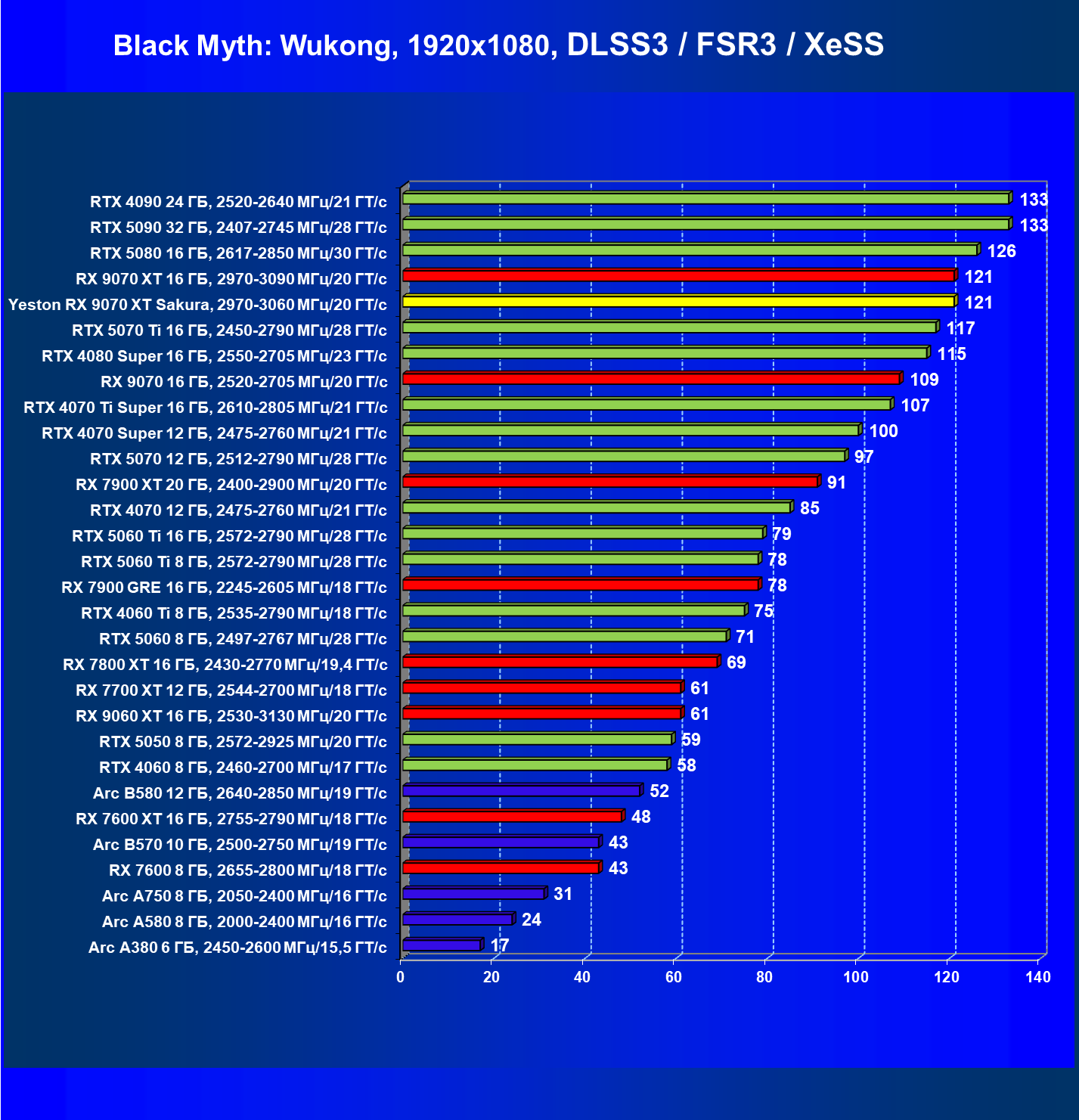 | 07 | Yeston RX 9070 XT Sakura, 2970—3060 МГц/20 ГТ/с | 5000 | 649 | 77 000 |