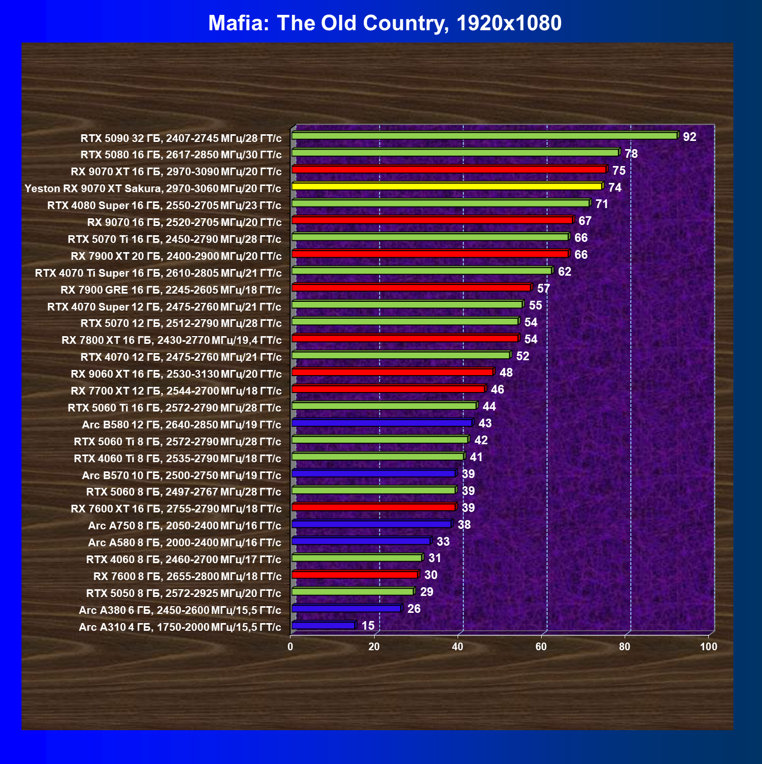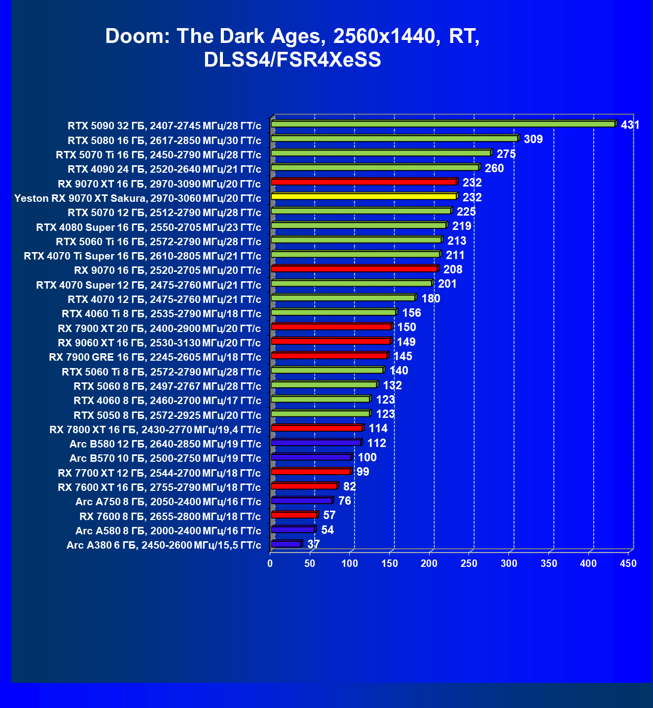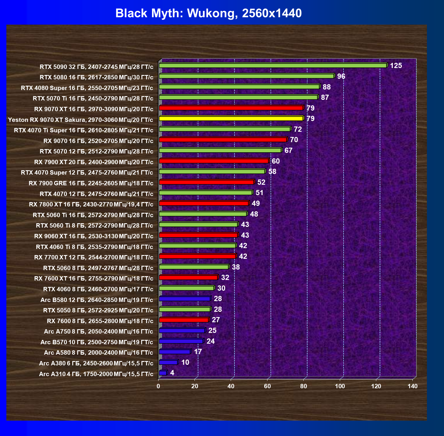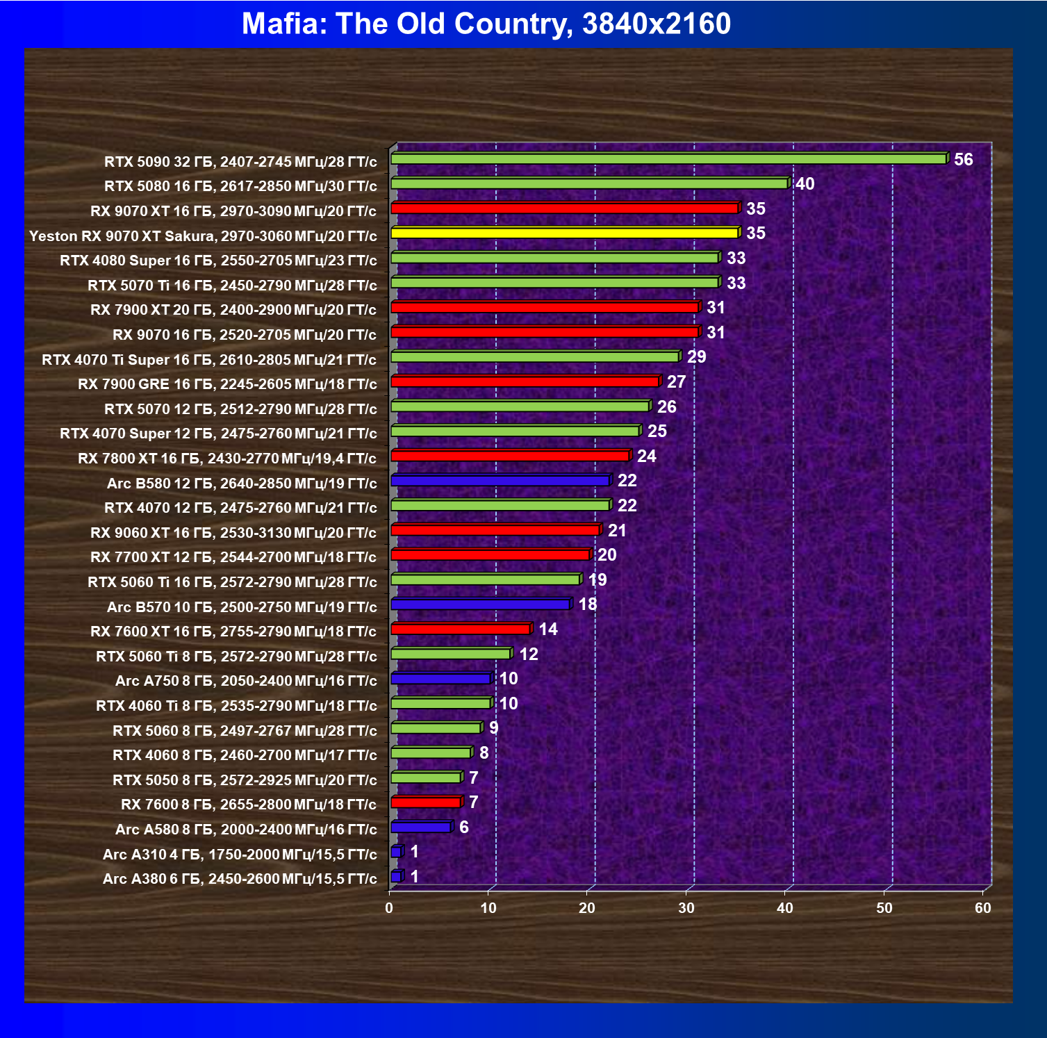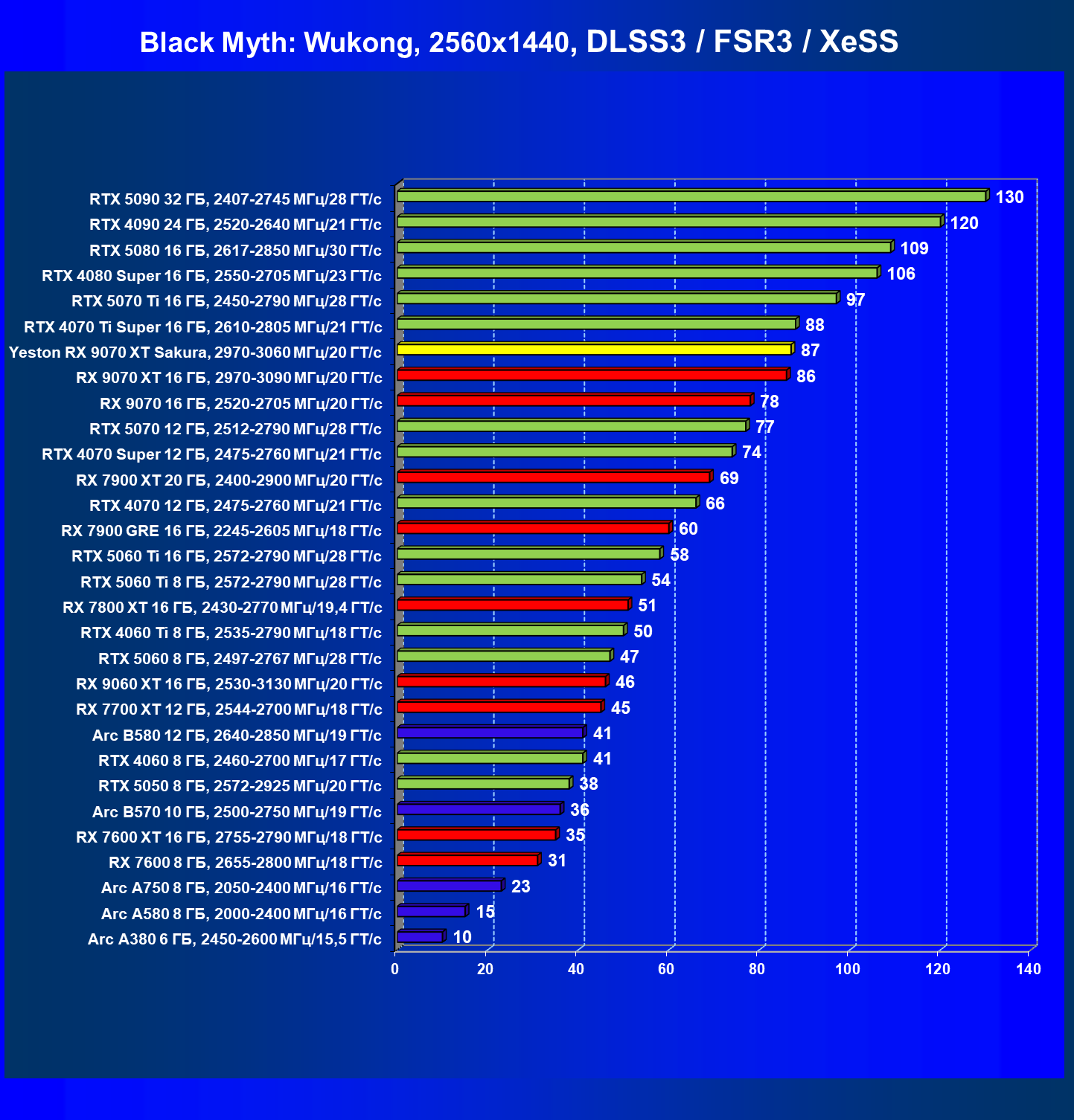 | 07 | Yeston RX 9070 XT Sakura, 2970—3060 МГц/20 ГТ/с | 5000 | 649 | 77 000 |