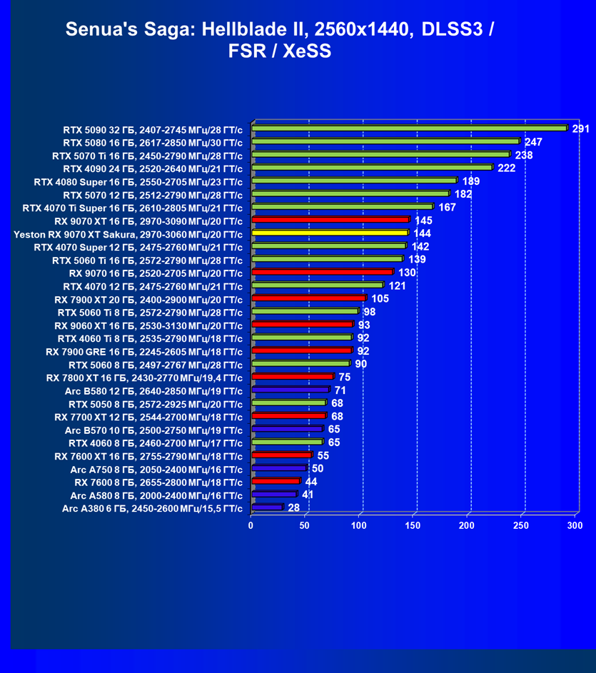 | 11 | Yeston RX 9070 XT Sakura, 2970—3060 МГц/20 ГТ/с | 649 | 5000 | 77 000 |