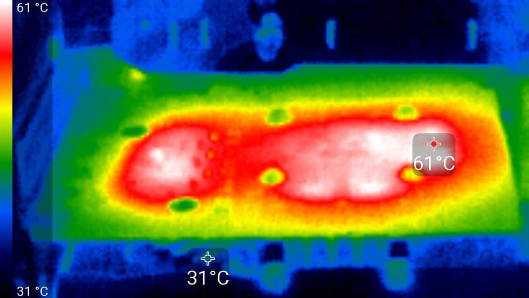 Максимальный нагрев — большая часть PCB вокруг GPU.