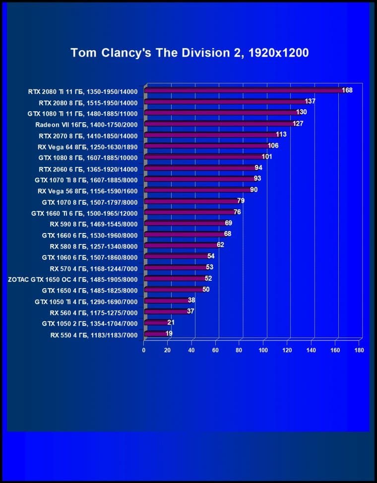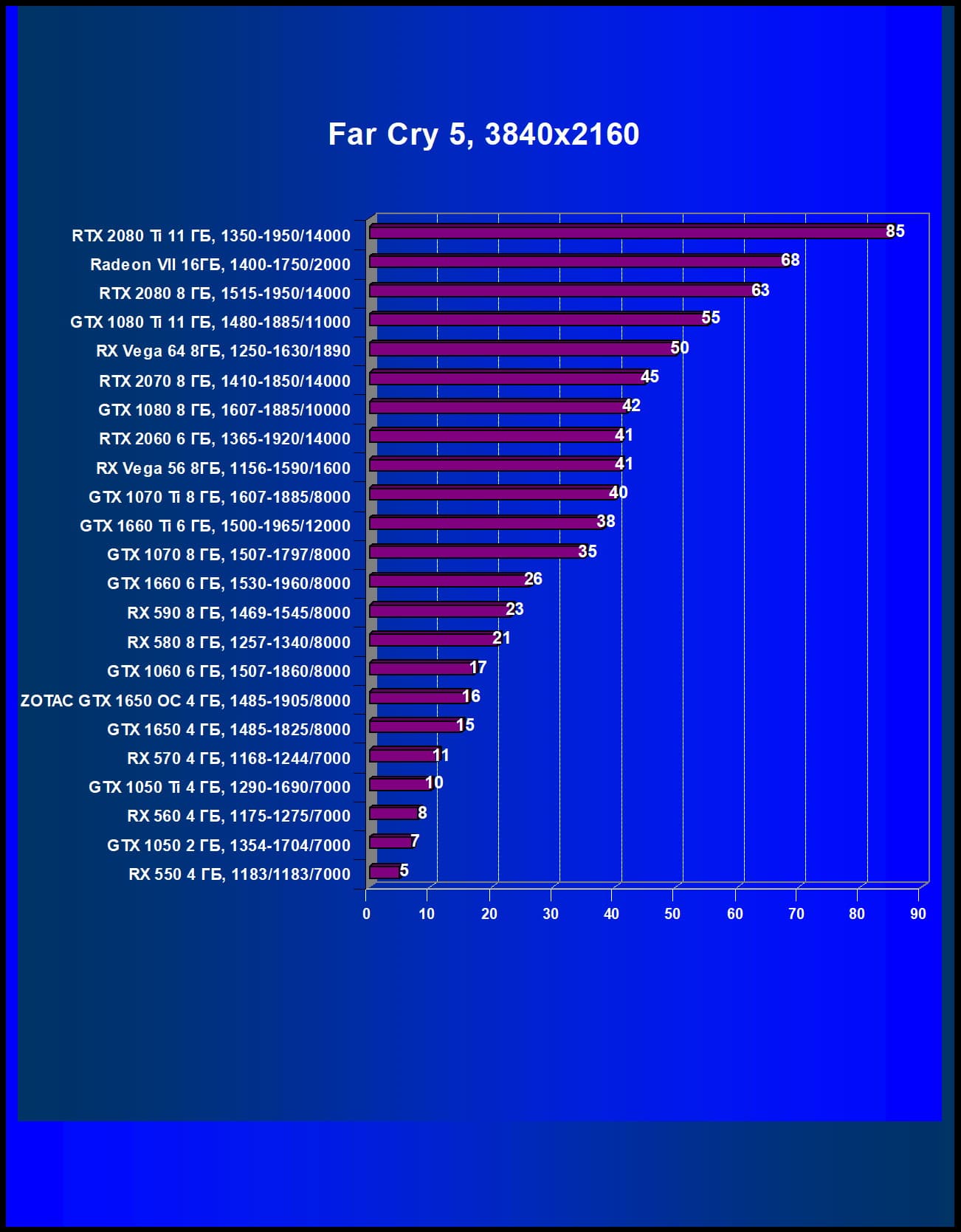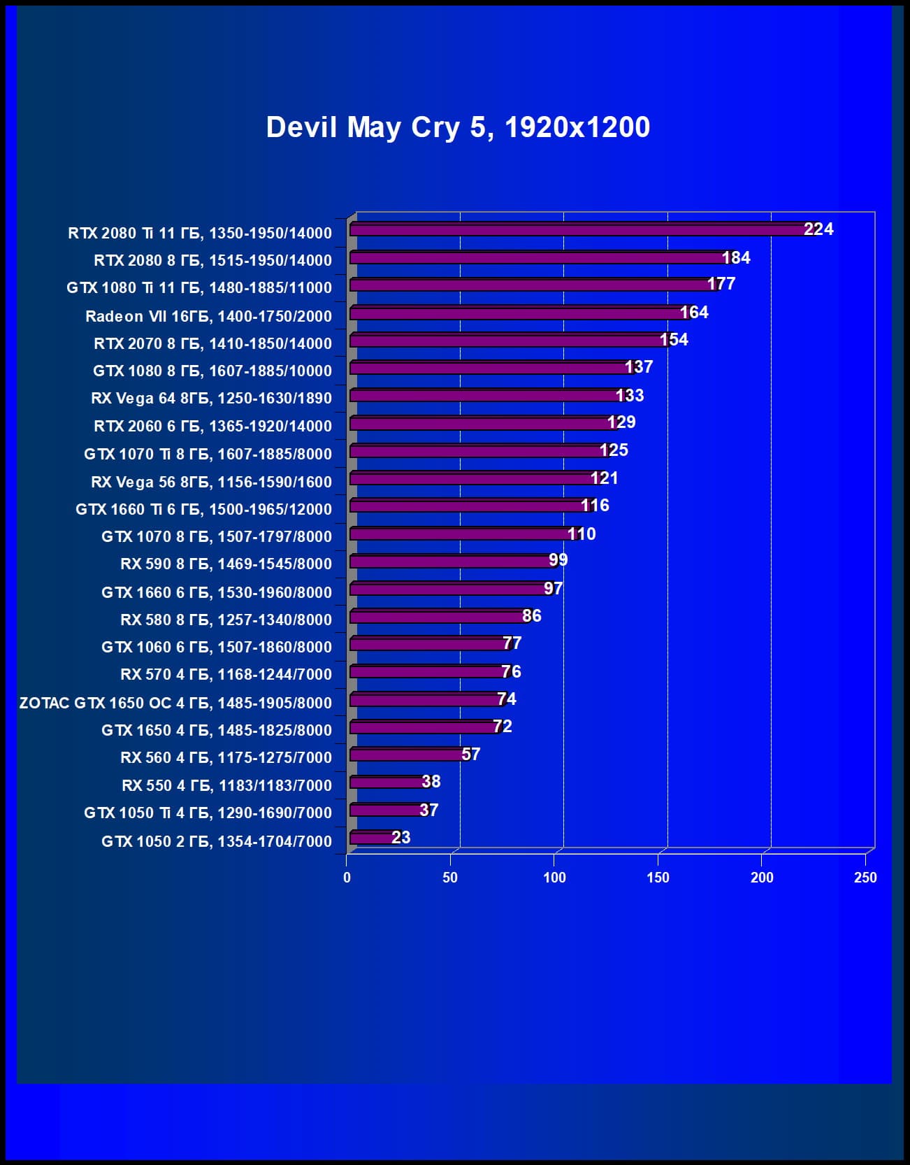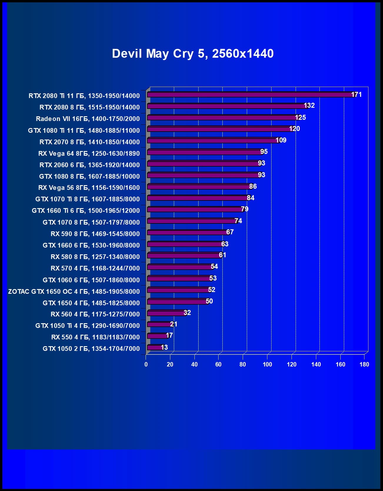 | 19 | GTX 1650 4 ГБ, 1485—1825/8000 | 300 | 303 | 9900 |